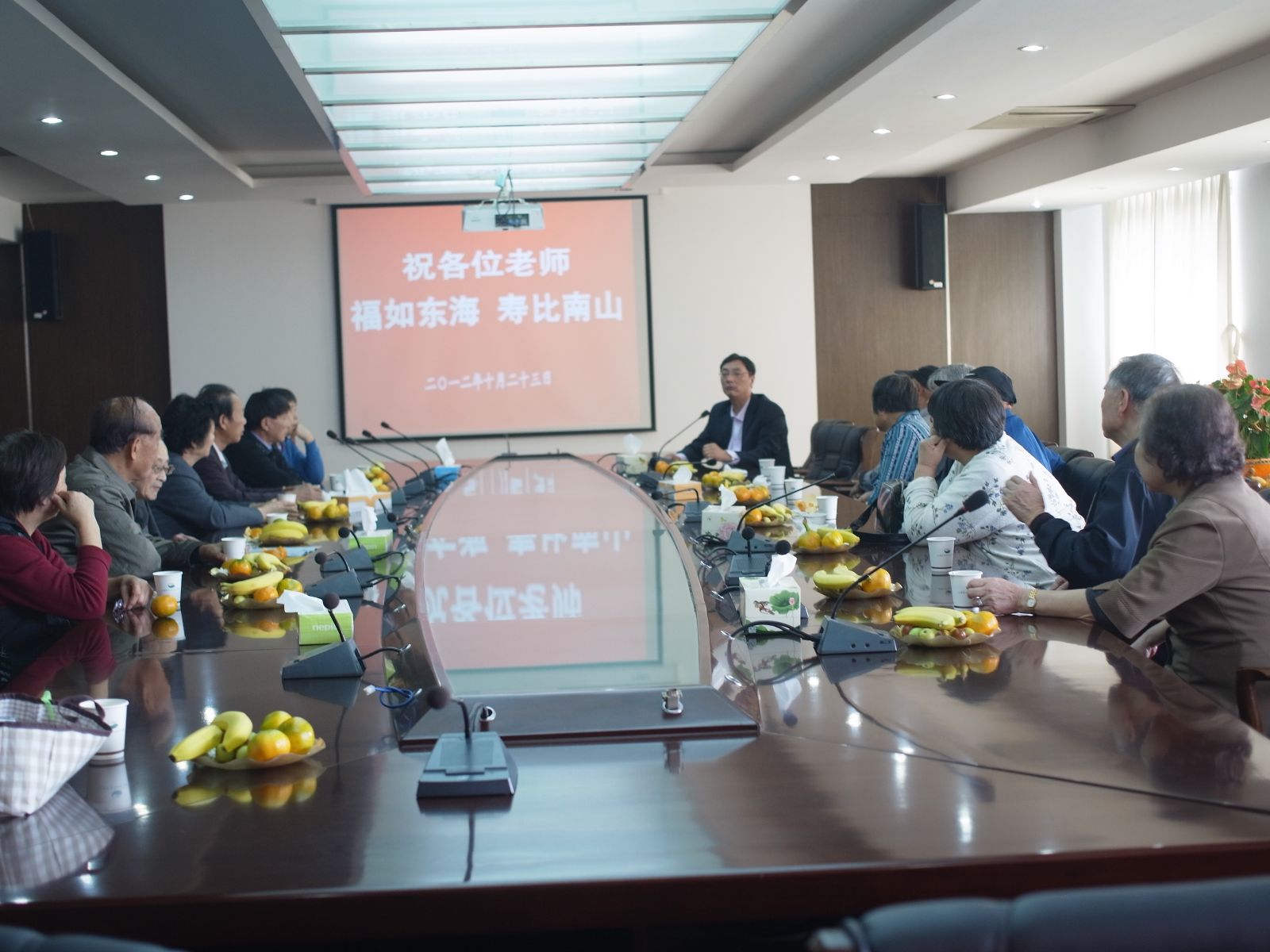 10月23日上午,学院综合楼1101室气氛融洽,其乐融融,4位年届70岁、5位年届80的离退休老同志的祝寿活动在此举行。