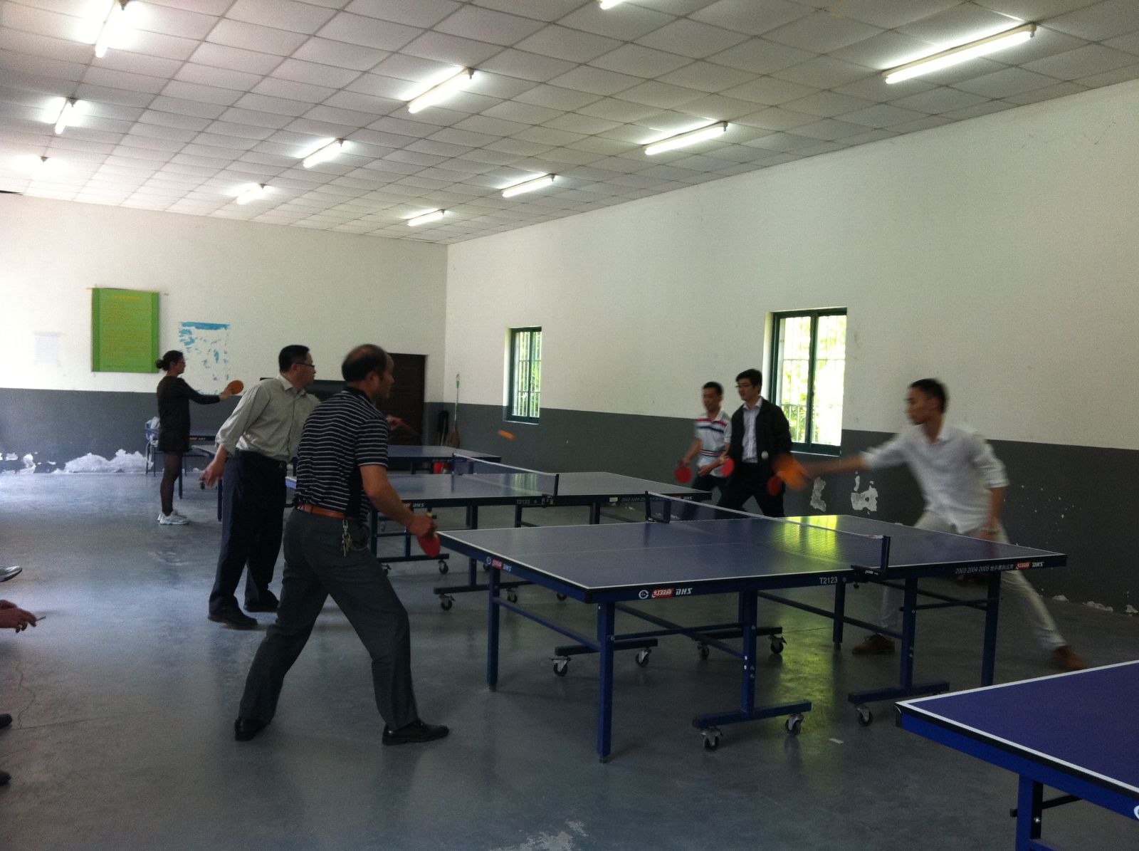 2013年5月3日下午,晴空万里,微风拂拂,机关五组工会成员相聚在乒乓馆,他们热情高涨、摩拳擦掌。发球,回击,小小的乒乓球在空中愉快地来回旋转着,“咚咚咚”不时传来清脆的球触板的声音。不一会儿,练习者的额头上就渗出了汗水,他们像孩童般用袖子拭去汗水继续练习,他们时而高高挥板,时而轻轻挡球,每到精彩时便不由自主的发出赞叹声。生命在于运动,运动使平日静坐在办公室办公的职工活跃了起来,运动舒缓了压力。