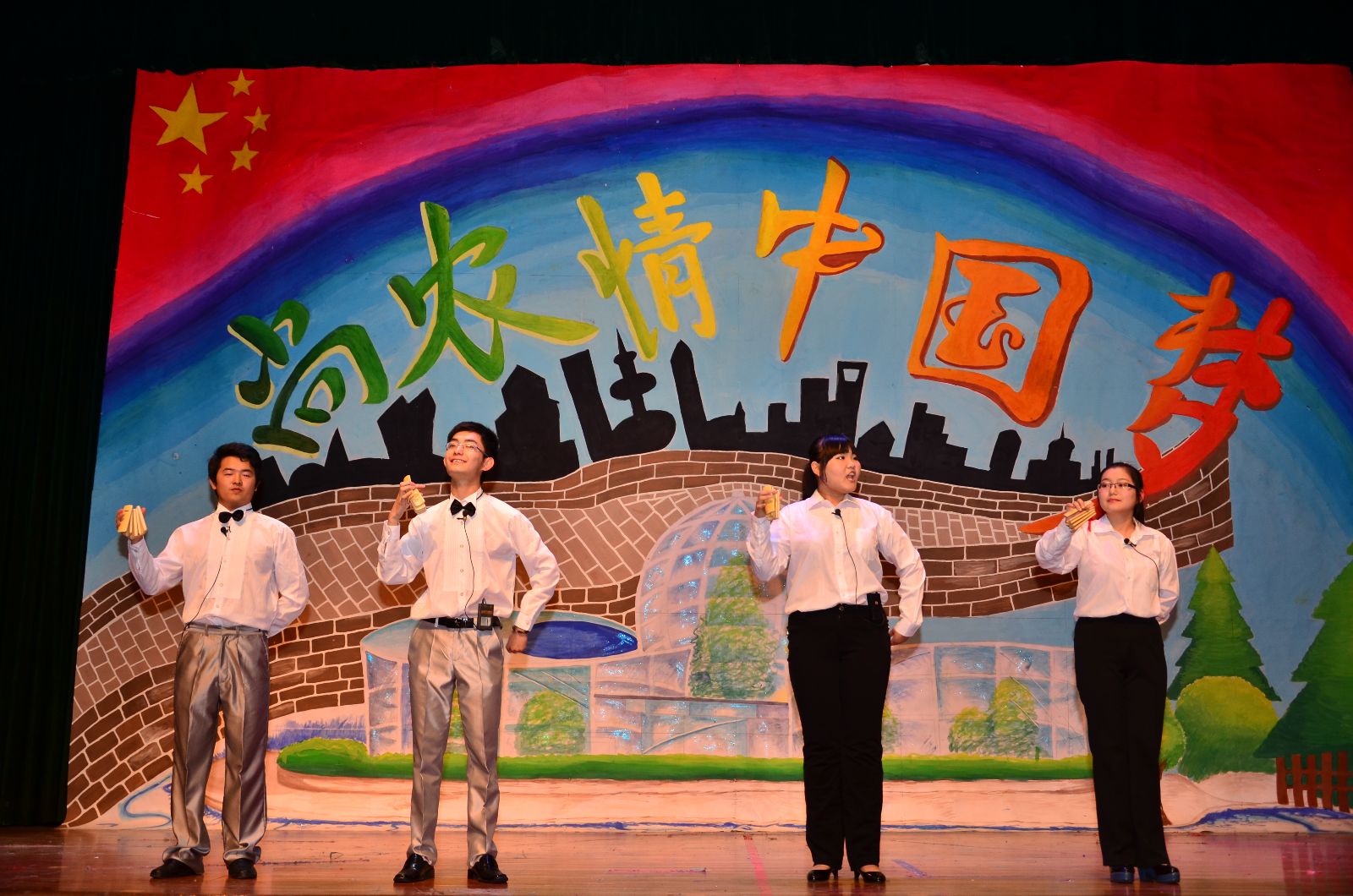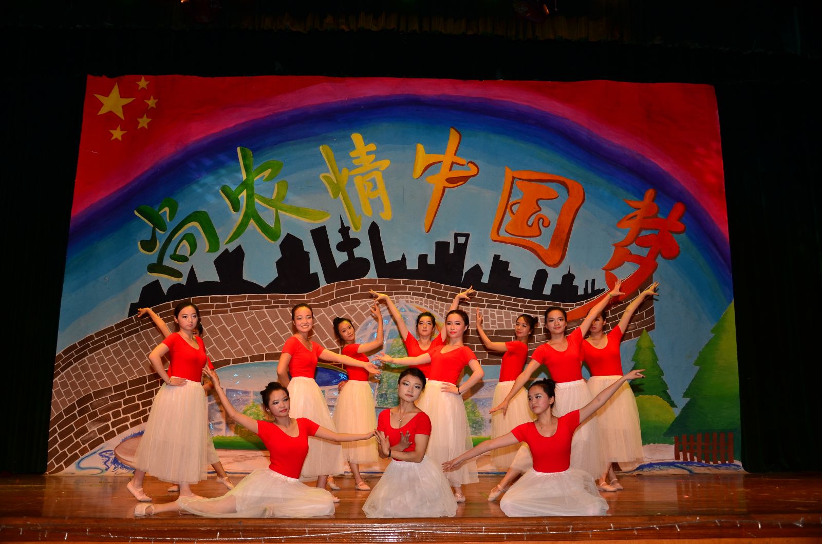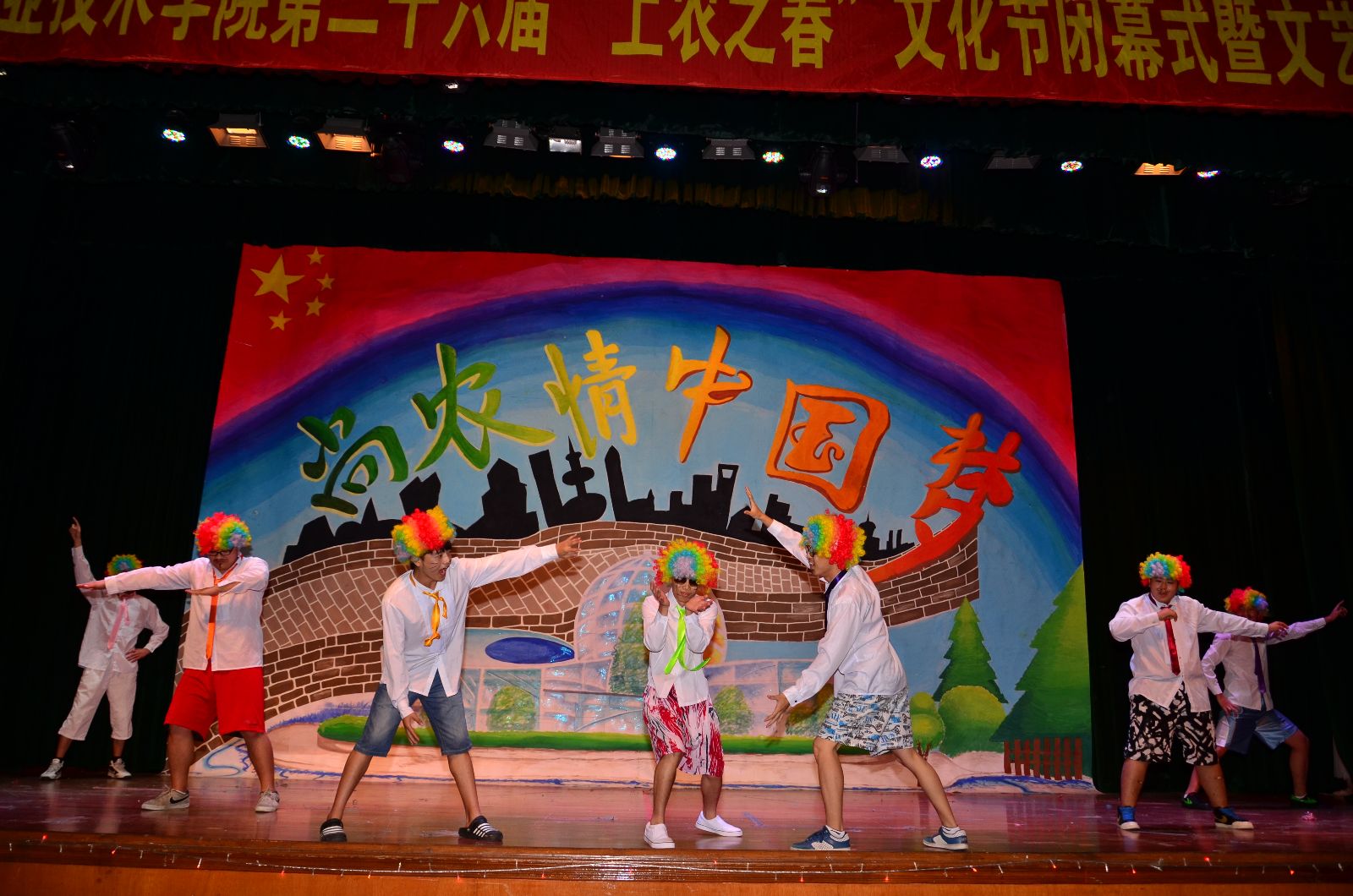 大合唱《尚农之歌》拉开了文艺汇报演出的序幕。情景朗诵《少年中国梦》、男声四重唱《我爱你,中国》、相声《买卖论》、快板《歌颂十八大共圆中国梦》、网络最红表演《funny show》等形式多样的文艺节目陆续精彩上演,同学们青春勃发、饱含深情、各具特色的精彩演出展现了当代青年人积极向上的精神面貌。大家追寻和创造着属于自己的青春梦想,共同表达了坚定走中国特色社会主义道路和为实现“中国梦”的坚定信念,晚会自始至终洋溢着年轻人的朝气,活力四射,富有创意,最后在舞蹈《和谐之光》的精彩表演中落下帷幕。