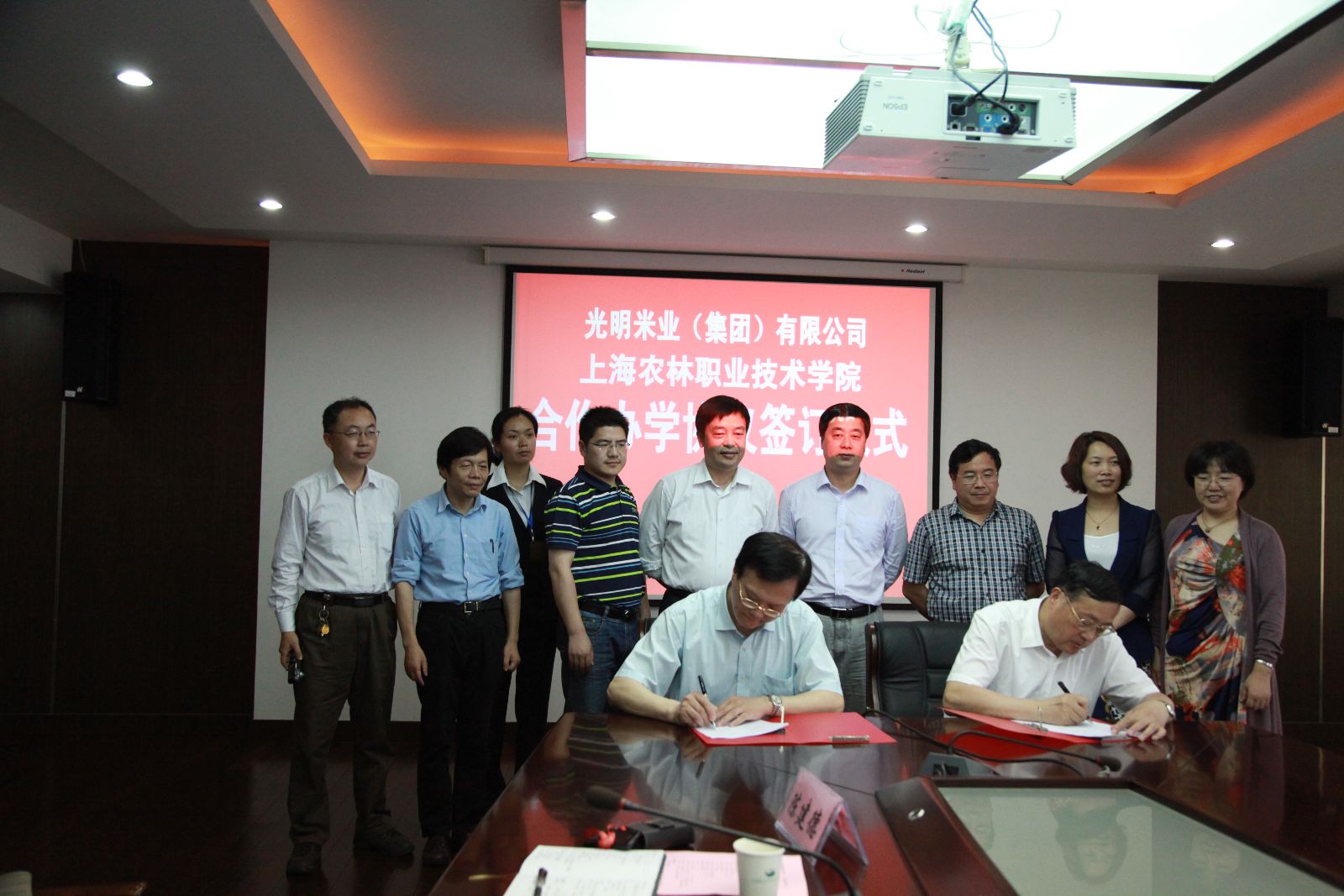院长魏华与光明米业(集团)有限公司董事长项竞文签订校企合作办学协议