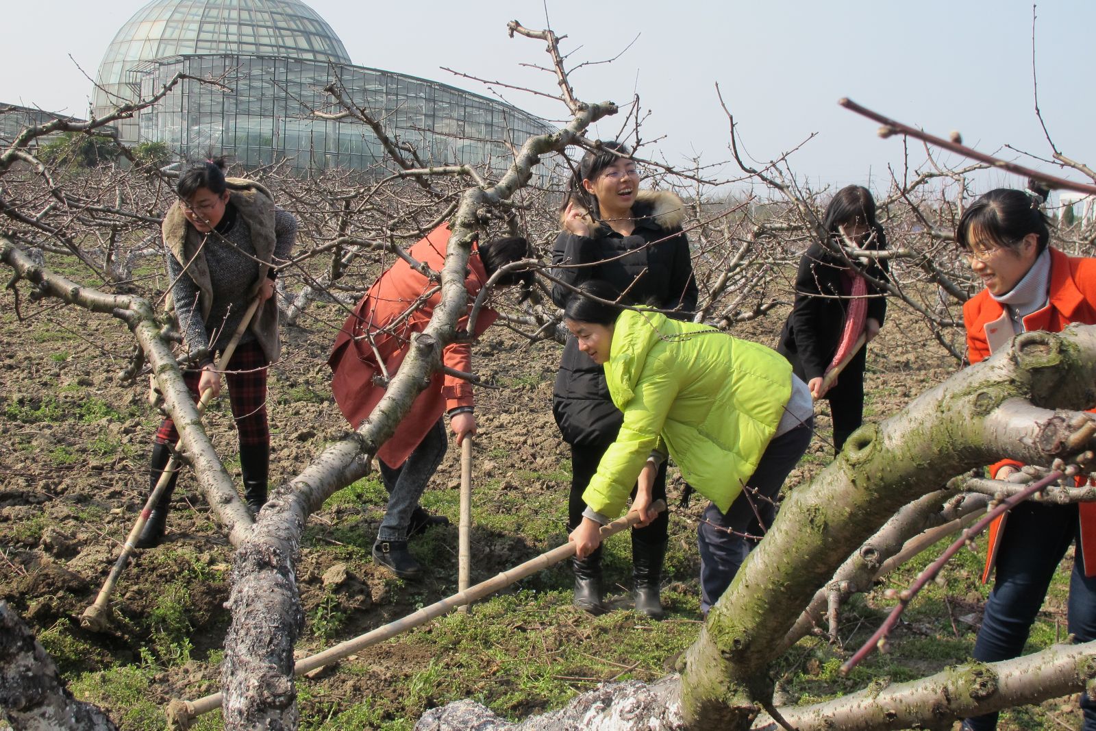在春光明媚的基地里,女职工们参观了现代温室及风景园林实训区、大田植物实训体验区、城市动物驯养区,远观了正在修建的教学实训大楼和生活楼,很多女老师表示五厍基地的变化很大,每次参观后的感觉是基地变得更美了。同时,基地里春耕大幕早已开始,田间除草也将进入尾声,女教师们主动为桃树锄草,虽然大家干劲十足,几个女教师合作才将一棵桃树下的草锄完,大家体会了干农活的辛苦。