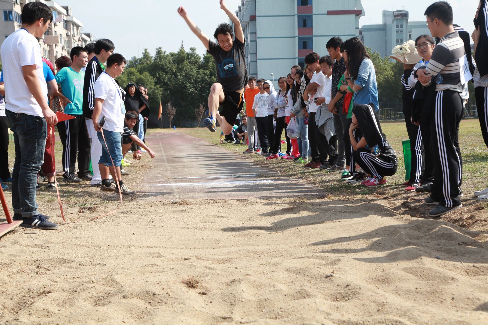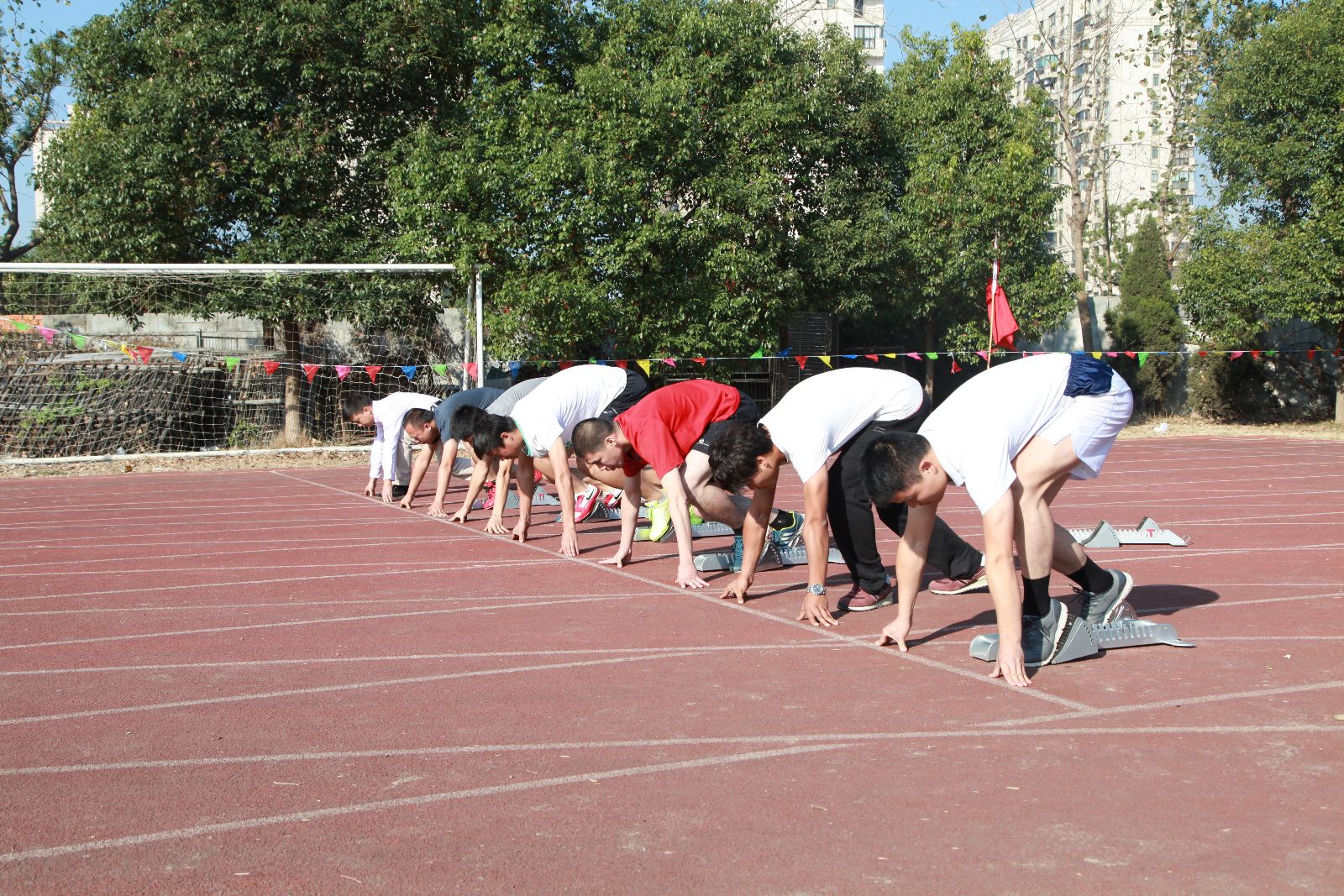 蓝天白云在上,绿荫红胶在下,整个运动场上充斥着热烈的号声,激情的汗水,真诚的微笑,相机记录下了一个个生动鲜活的影像!