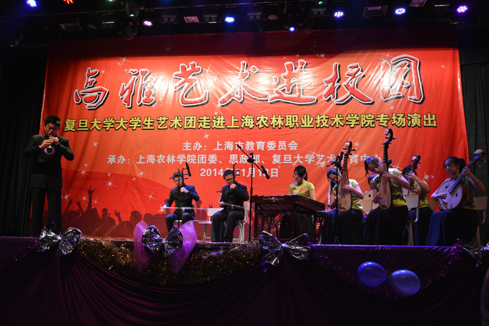 11月18日,由上海市教委主办,学院团委、思政部和复旦大学艺术教育中心共同承办的高雅艺术进校园——复旦大学大学生艺术团专场演出在学院大礼堂举行。学院相关部门负责人、支部书记,思政部教师、辅导员和全体14级新生共1200多名师生观看了表演。