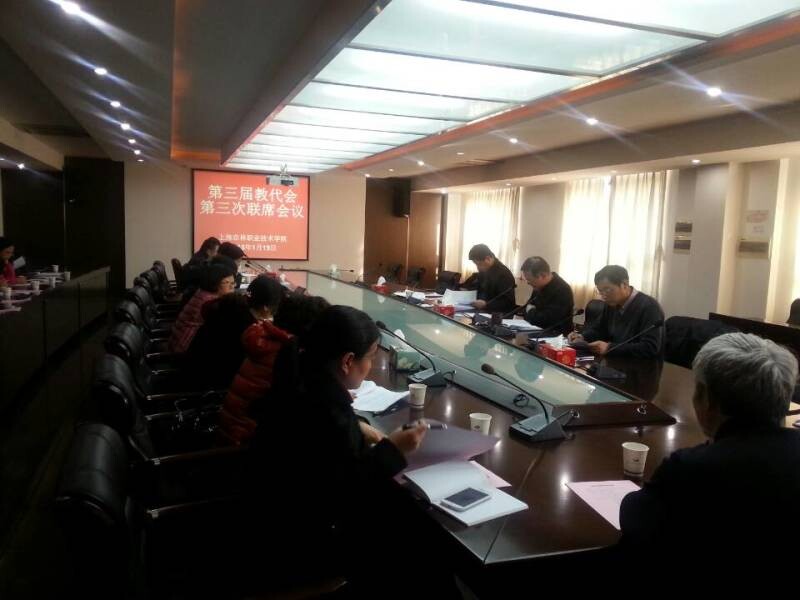 根据《学校教职工代表大会规定》以及《上海农林职业技术学院教职工代表大会实施细则》等相关规定,2015年1月19日下午15:00分,学院工会召开了第三届教代会第3次联席会议。教代会主席团成员、教代会代表组正副组长和学院工会委员参加了会议,各工会小组组长列席会议。