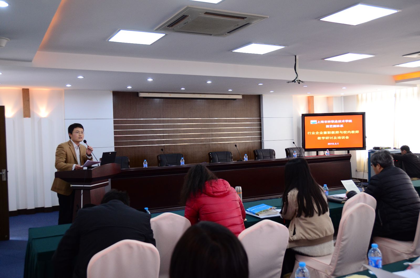3月1日下午,在综合教学楼1001会议室,园艺园林系邀请了23位行业企业兼职教师,与专任教师和行政兼课教师共同参加教学规范及教学方法培训,并开展教学设计研讨交流。为开学做好教学准备,推进特色校精品课程建设,加强校内外老师在课程教学设计及专业建设等方面的联系。