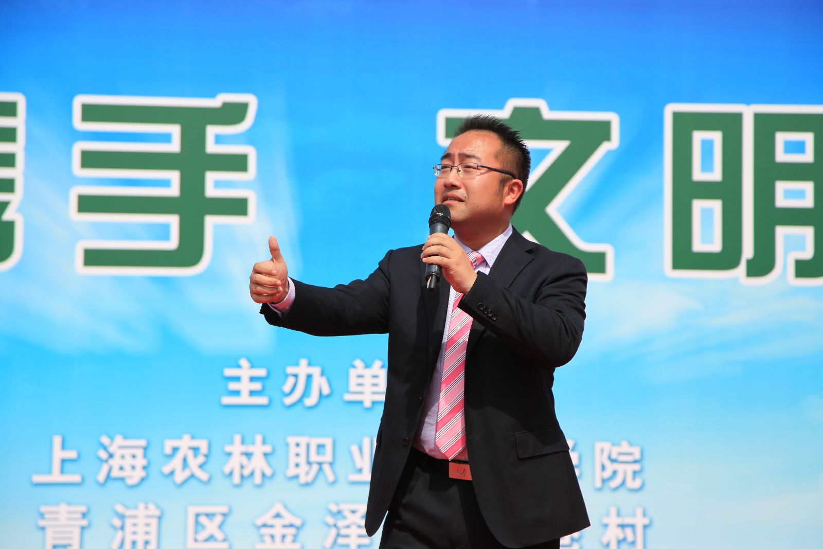 俞锦禄代表学院党政发言,随着双方共建活动的深入开展,促进了各自单位文明创建水平和人员文明素养双提升。作为今年文明共建和农业服务的重要内容,学院和金泽镇文广中心精心排演了节目,希望广大村民能从中获得精神给养,丰富乡村生活。并告诉村民们一个好消息,学院于今年1月获评全国文明单位。
