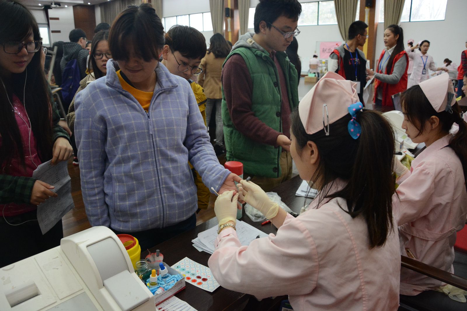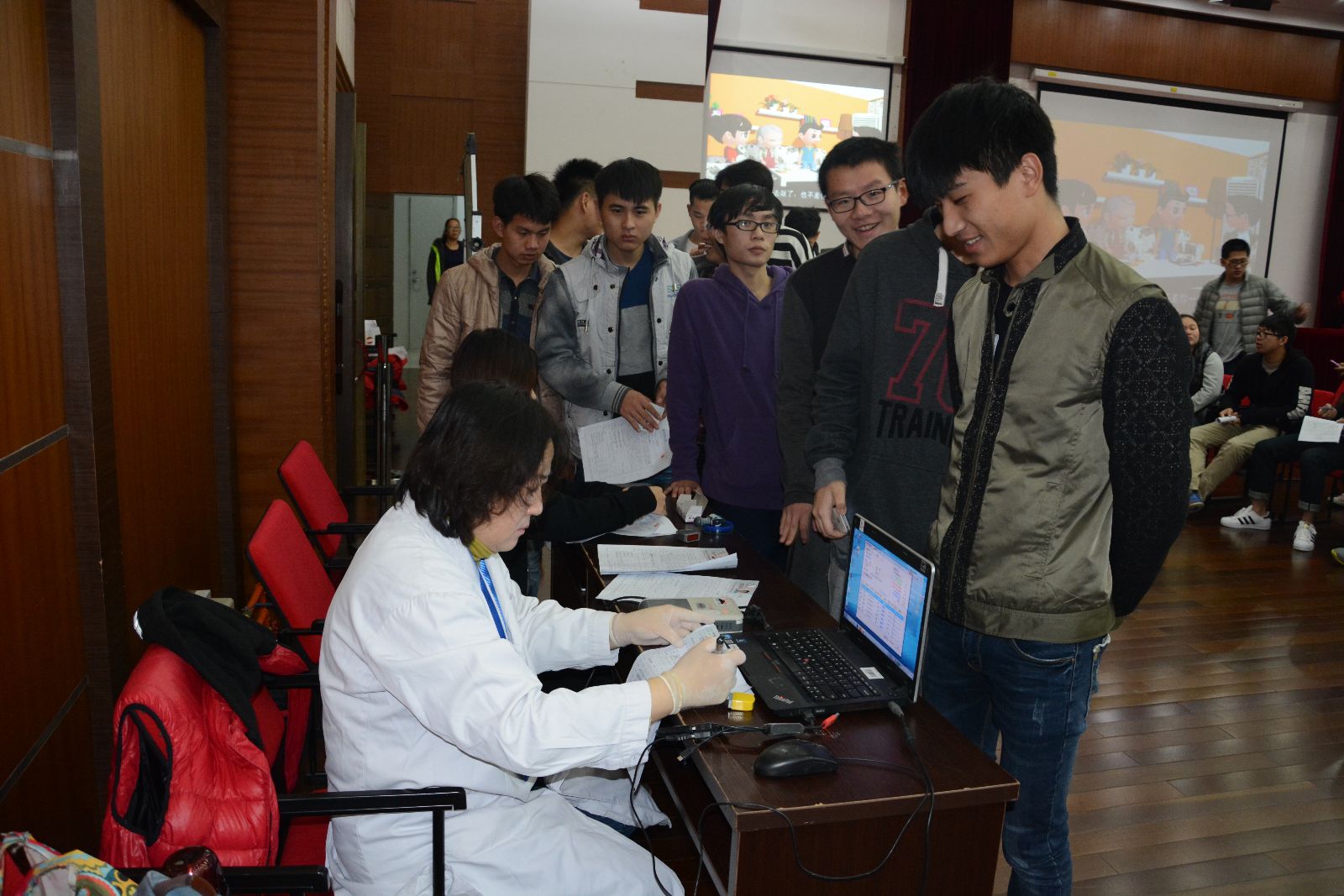 11月24日上午,在学院综合楼205报告厅,学院组织开展2015年师生无偿献血,6名教师和344名学生参与其中。