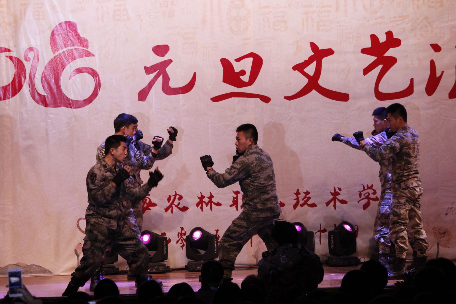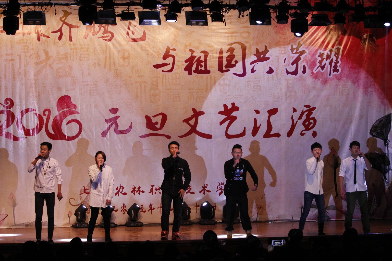 12月29日,由院团委主办的“与农林齐腾飞 与祖国共荣耀”2016年元旦文艺汇演在大礼堂举行。学院领导魏华、俞锦禄、高功辉、费国强以及相关职能处室负责人,各系学生工作负责人,团总支书记及学生代表等1000余人观摩了演出,共庆元旦佳节的到来。