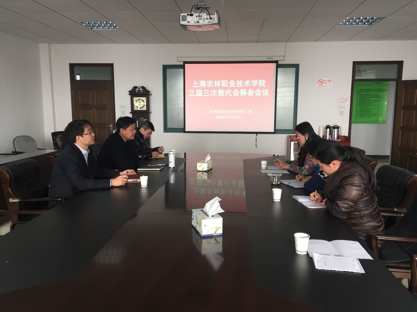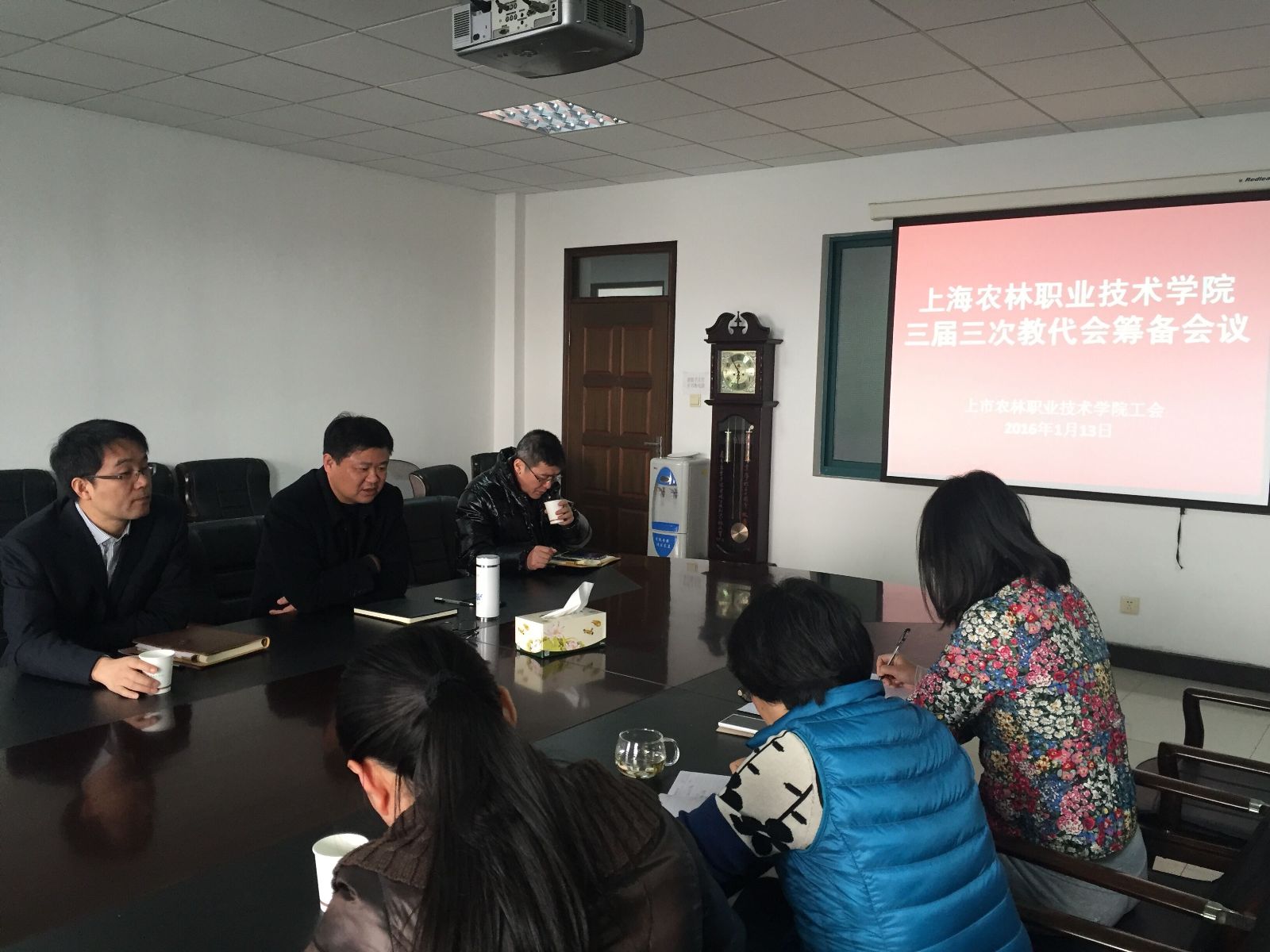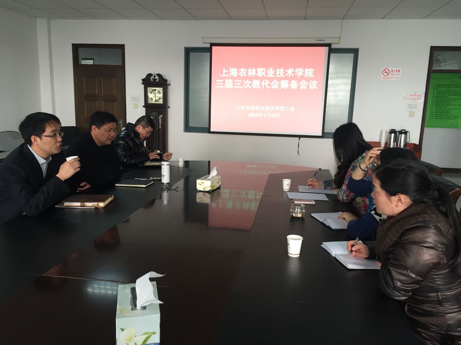 上海农林职业技术学院第三届第三次教代会筹备会议于今日顺利召开,工会主席高功辉、副主席李卫明、徐俐琴、财务处长费国强以及筹备委员会成员出席会议。本次筹备会就会议议程、会议前期准备进行了讨论。