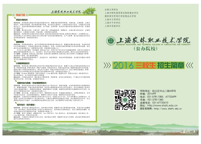 2016年上海农林职业技术学院“三校生”招生简章