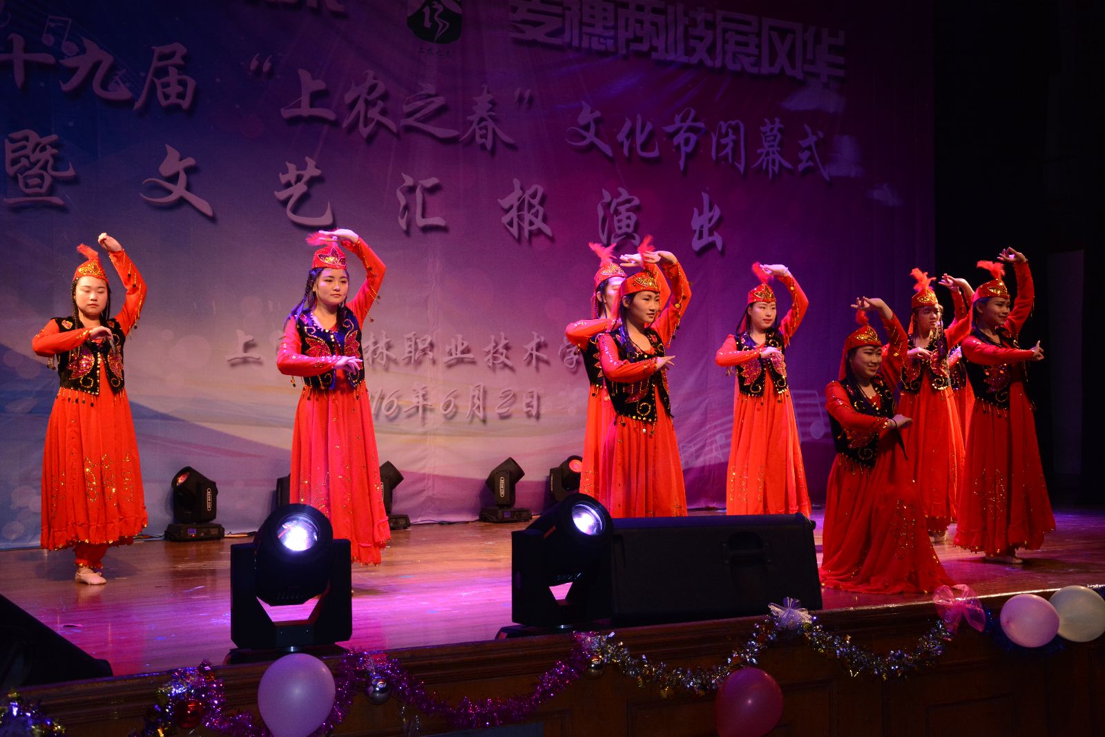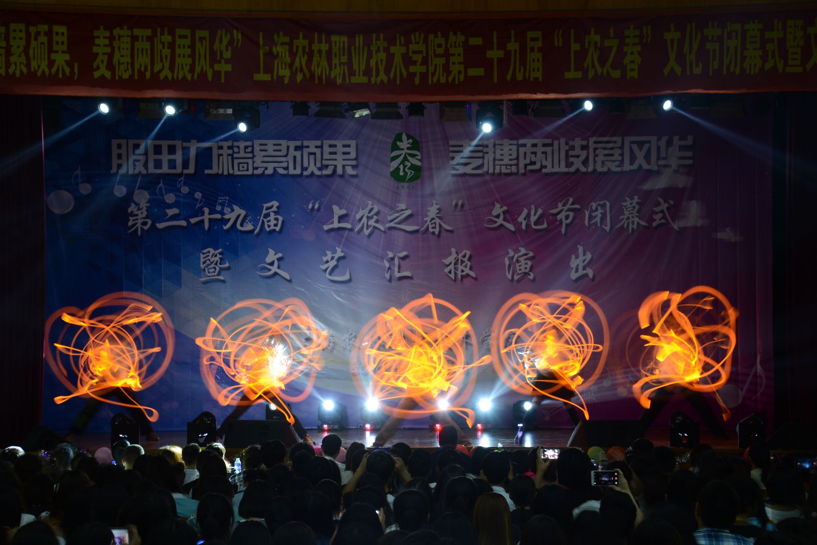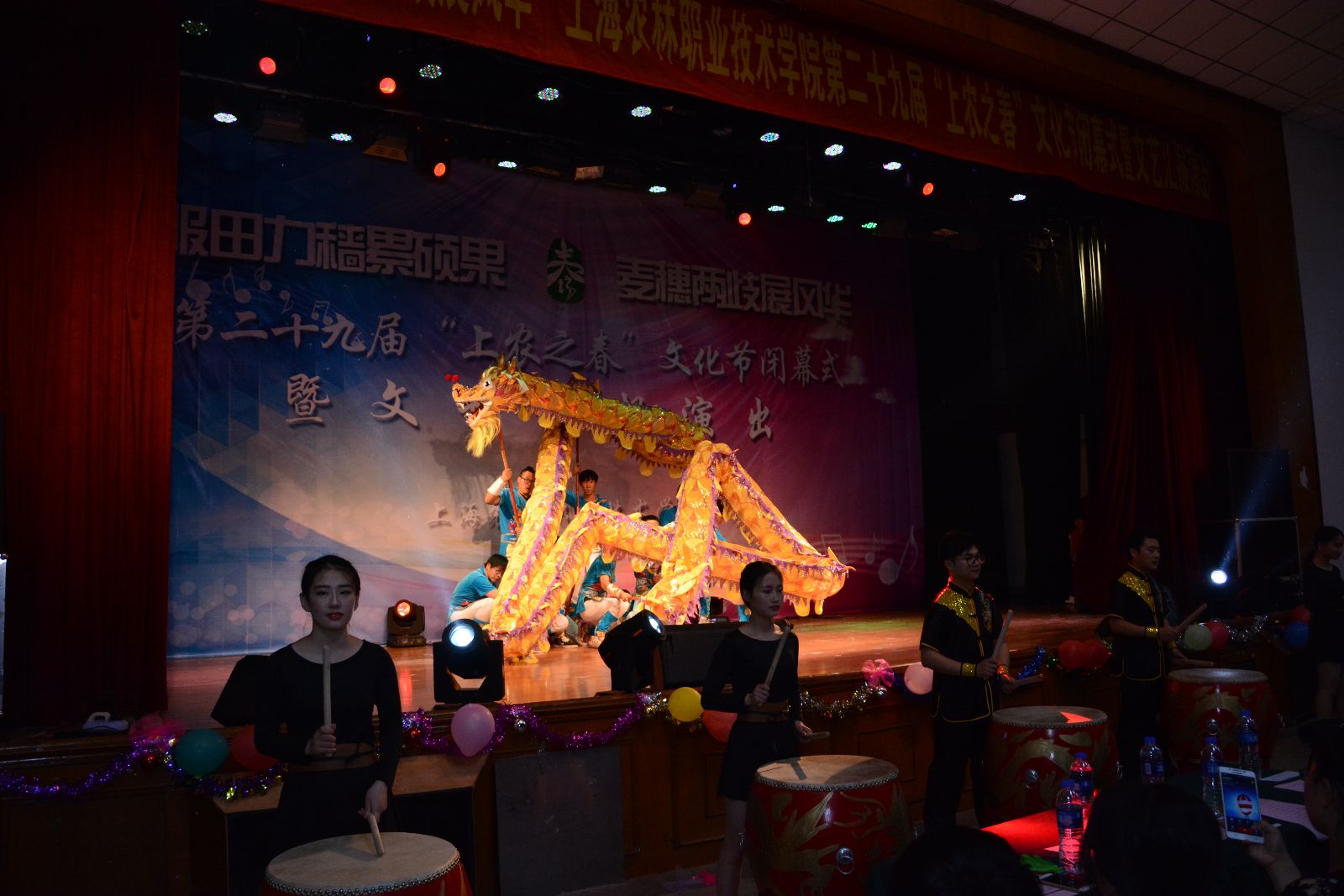 闭幕式上,龙、鼓表演《龙鼓欢腾》、情景朗诵《青春报告》、相声《规矩》、新疆舞《花儿为什么这样红》、环保服饰走秀表演和歌曲《年轻的战场》等形式多样的文艺节目交映生辉,展现了上农学子在学院校园文化中锻炼成长、全面发展、追逐梦想的青春风采。文艺演出最后在全场欢腾的舞蹈《中国范儿》的精彩表演中落下帷幕。