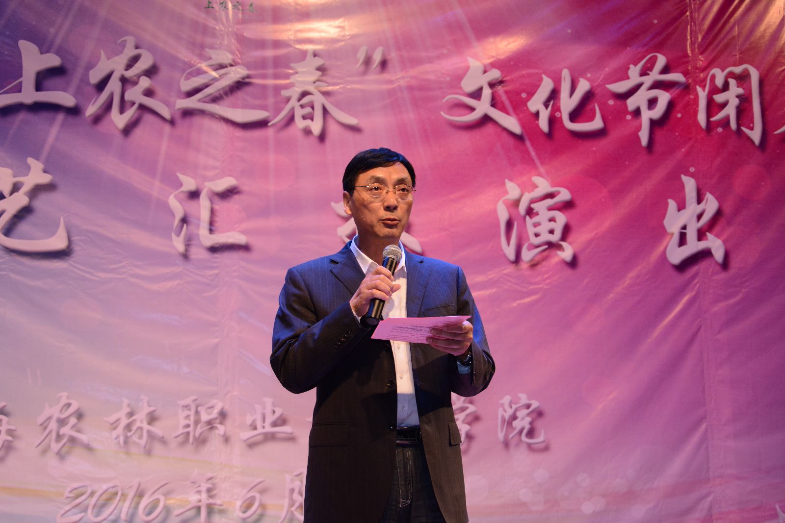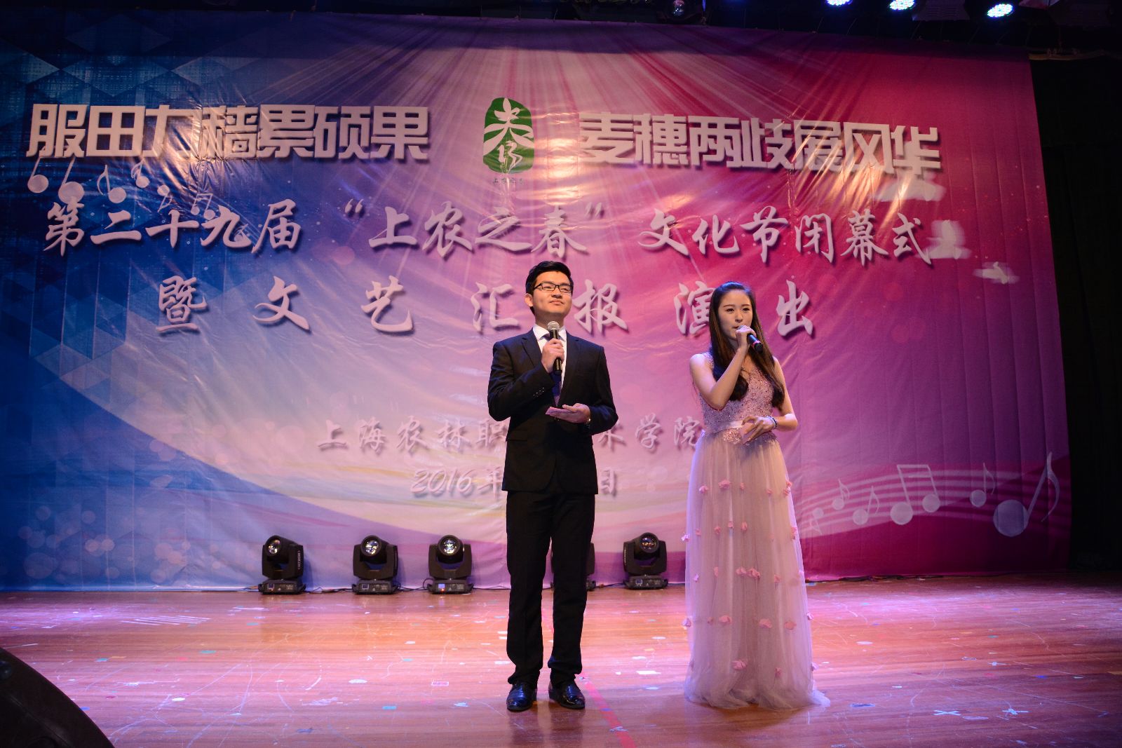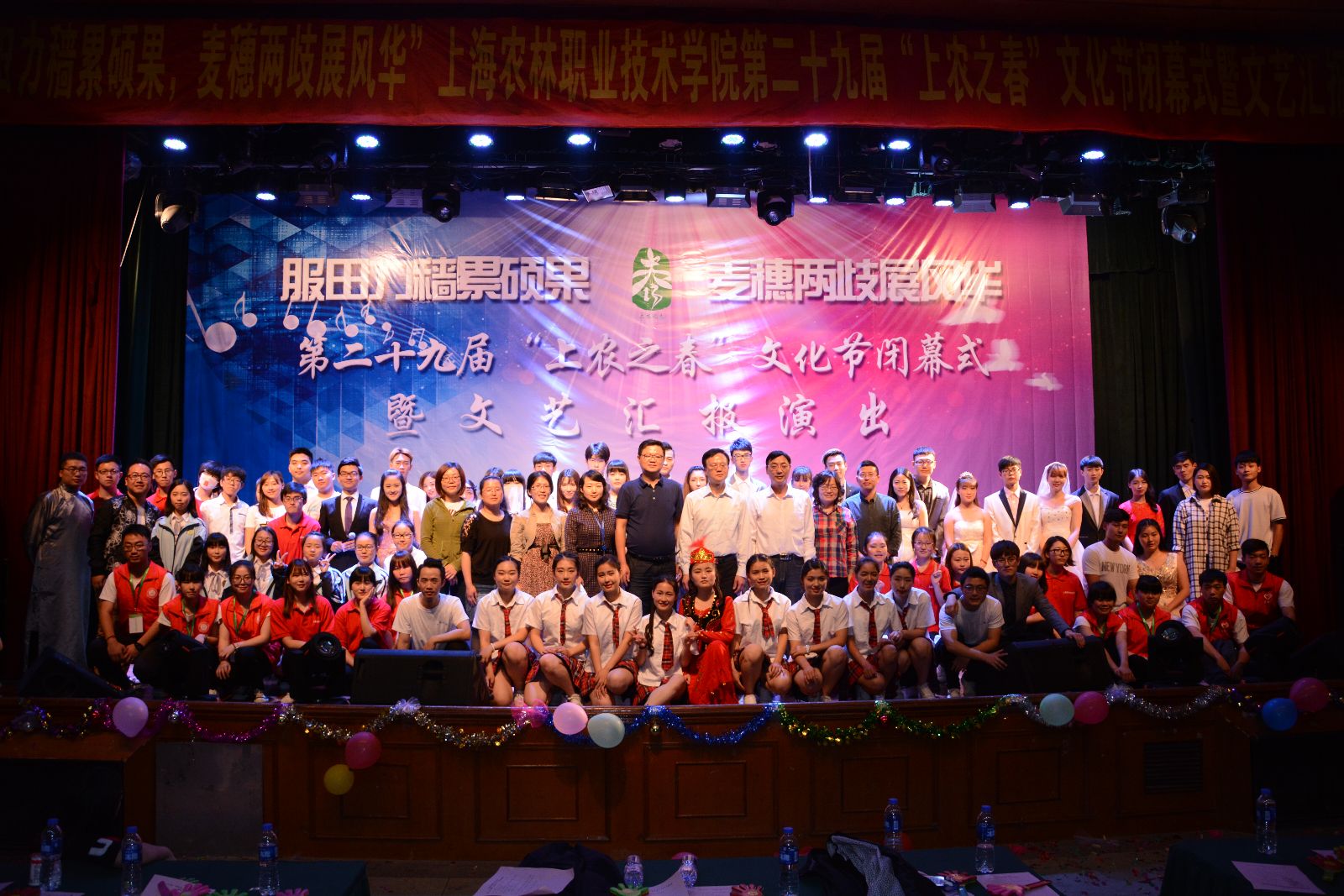 6月2日,学院第二十九届“上农之春”文化节闭幕式暨文艺汇报演出在大礼堂举行。学院党政领导魏华、俞锦禄、高功辉出席,本届文化节组委会成员,宣传处处长樊清誉、学生处处长刘秀云等相关职能部门负责人,获奖人员,师生代表等1000余人参加了闭幕式。