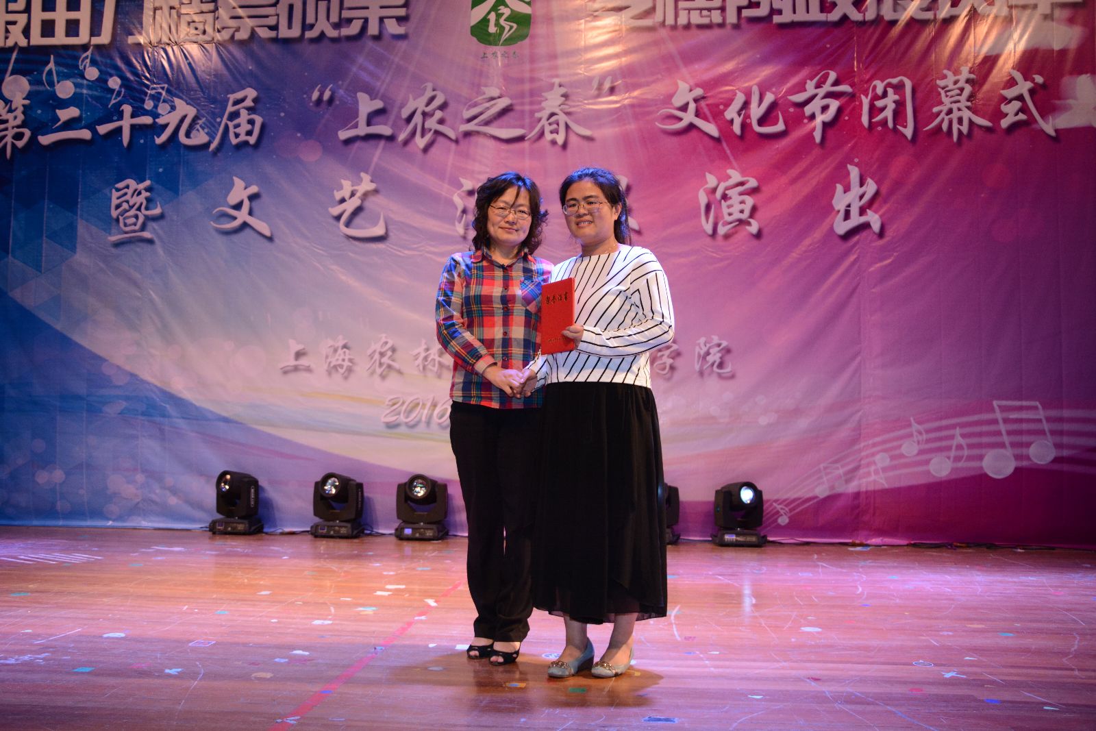 魏华宣布上海农林职业技术学院第二十九届“上农之春”文化节闭幕!俞锦禄宣读了《中共上海农林职业技术学院委员会关于表彰第二十九届“上农之春”文化节先进集体和先进个人的决定》,并与高功辉、樊清誉、刘秀云为文化节各项活动的获奖师生、优秀指导教师和优秀组织奖进行了颁奖。