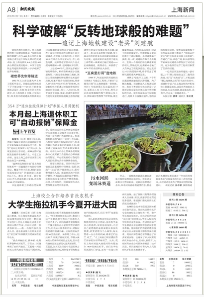 8月1日,新民晚报头版要闻版以标题形式,报道了我院大学生下田当拖拉机手。文字报道详见A08版上海新闻。同时,该报道还被新民网头条、腾讯新闻、农机通讯社、凤凰网、中国网等网站转载。