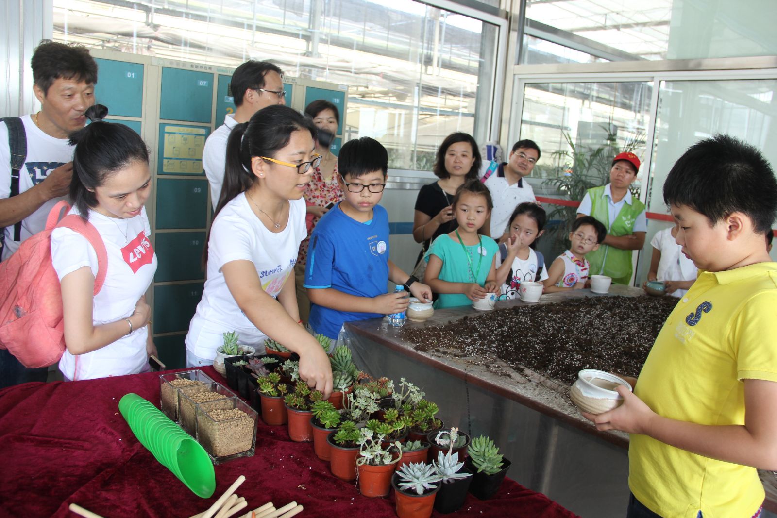 四天中,参加活动的体验者达到413人次。考虑到大家来一次不容易,实训基地将活动安排得非常紧凑,一天共安排了4场,体验者可以根据自己的兴趣从现代小农夫-土法深加工、小小园艺师-多肉植物栽培、稻谷变大米等3个不同的活动中进行选择。小小园艺师的内容由原来的DIY水培植物换成了时下流行的多肉植物栽培,让孩子们都觉得非常新奇。活动给了体验者更多梦想放飞的机会,大家一起“暑”快乐。