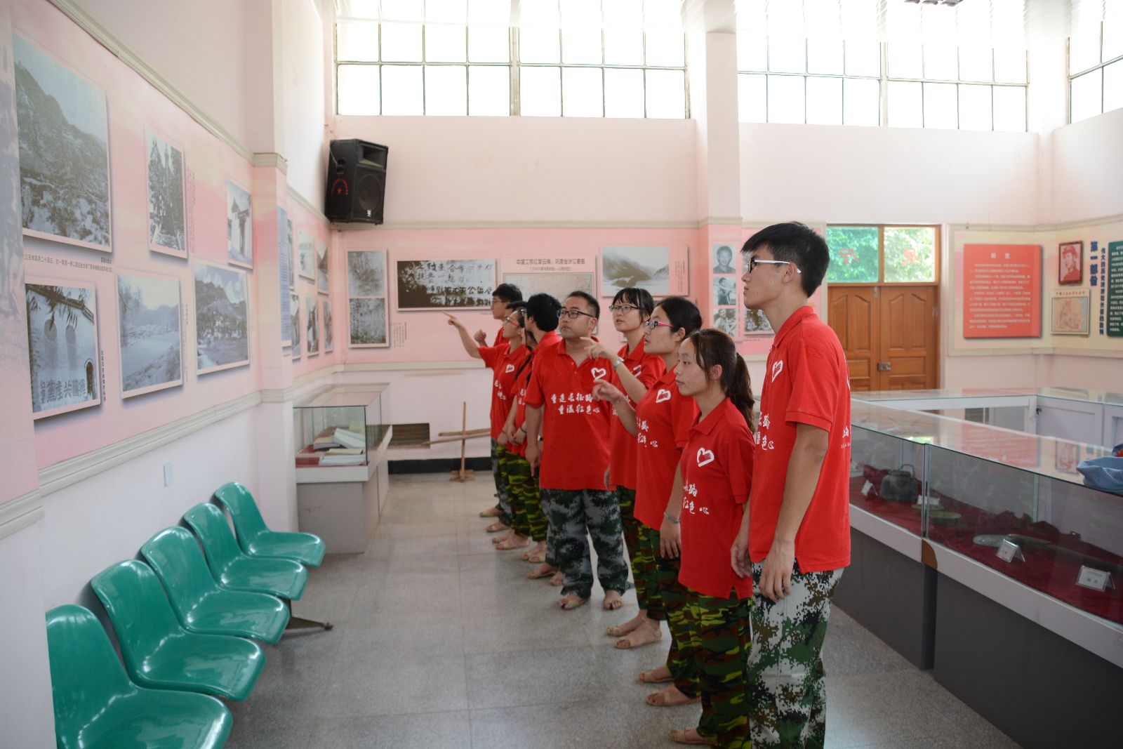 在途径当年毛泽东,周恩来,朱德等中央领导人指挥渡江的一排简陋不堪的小山洞时,使大家从现实中深刻体会到了革命的辛酸史和血泪史,在山洞旁边,帮助红军渡江的37名船工姓名的石碑赫然在目。看着眼前的场景,回想当年红军渡江的情景,从革命先烈的不畏艰辛,不怕牺牲的英雄事迹,让同学们接受了一次理想信念教育,经历一次心灵震撼,经受一次革命洗礼。