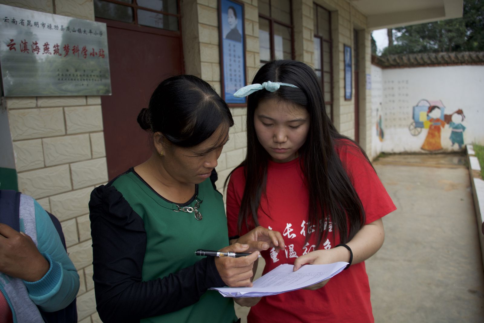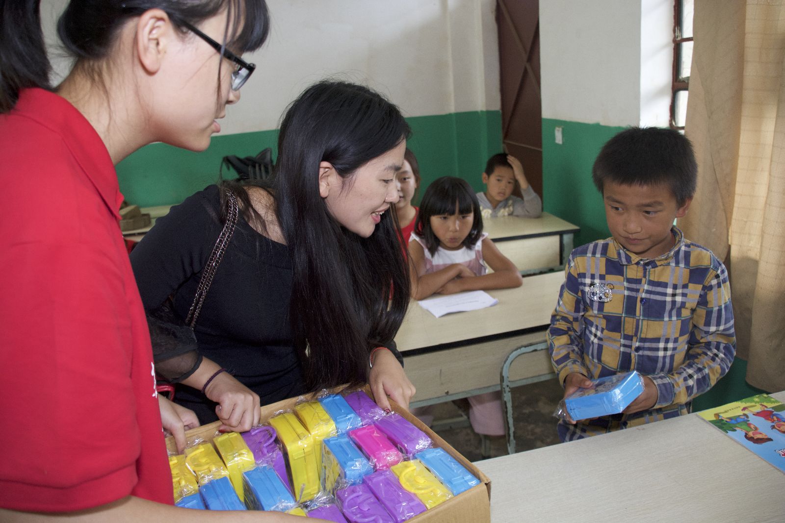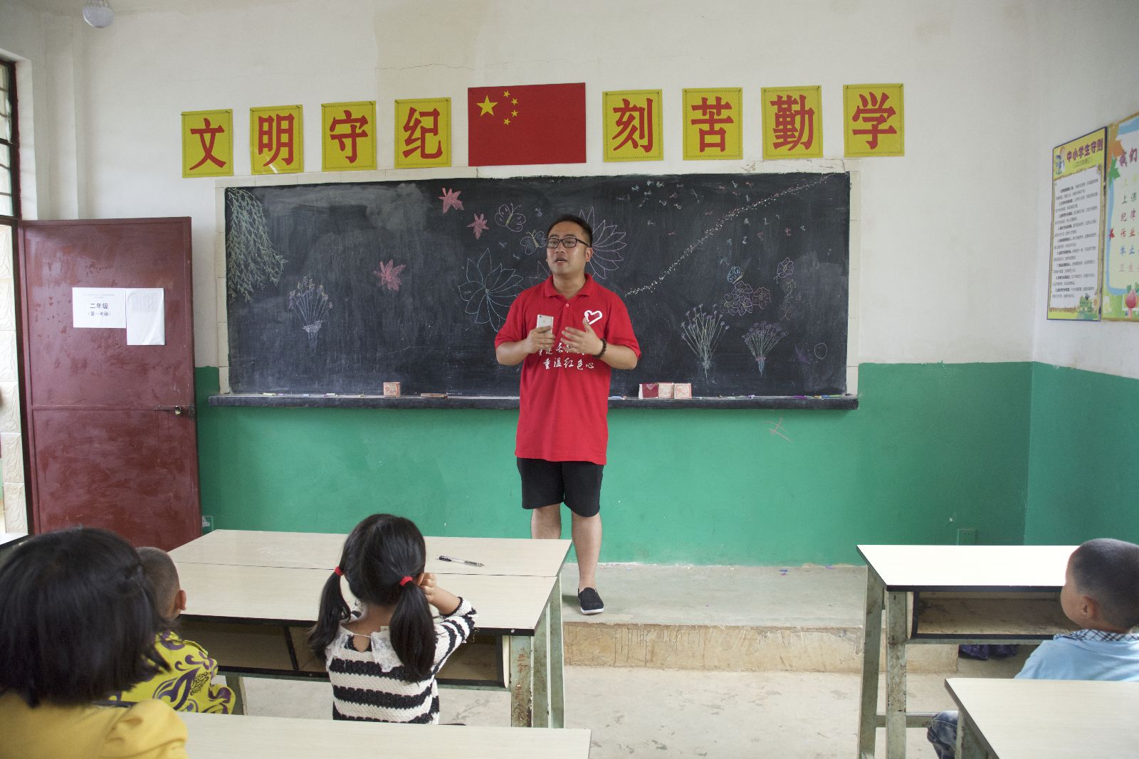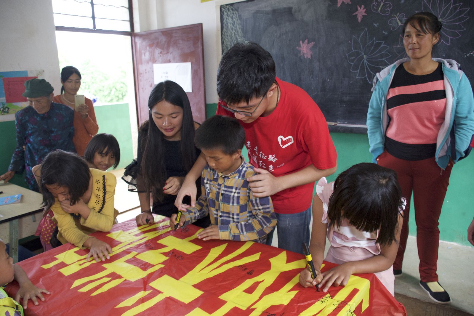 结束老乡家活动后,实践团一行奔赴茂山中心校太平小学开展公益志愿活动,这是第一次师生们为他们讲述长征故事。山区孩子们一双双对知识充满渴望的眼睛打动了在场的每一位成员,作为大学生的我们力量有限,但是要尽我们最大的力量为他们带去快乐。在团委副书记胡慧春老师的带领下,大家教他们唱起了此次实践队歌、发放爱心物资、做调查问卷……最后孩子们在我们的横幅上签下了自己的名字。“我们会把你们的名字带回上海,我们会把你们对知识的渴望告诉更多人,我们会再来看你们的。”大家互帮互助,内心涌动着无限的热情和感动。正如实践团郑颖宇同学所讲:“希望大三毕业后能够参加大学生志愿服务西部计划,帮助边远山区的孩子们,给他们带去知识和来自远方的温暖,一起帮助革命老区完成脱贫的新长征路”。