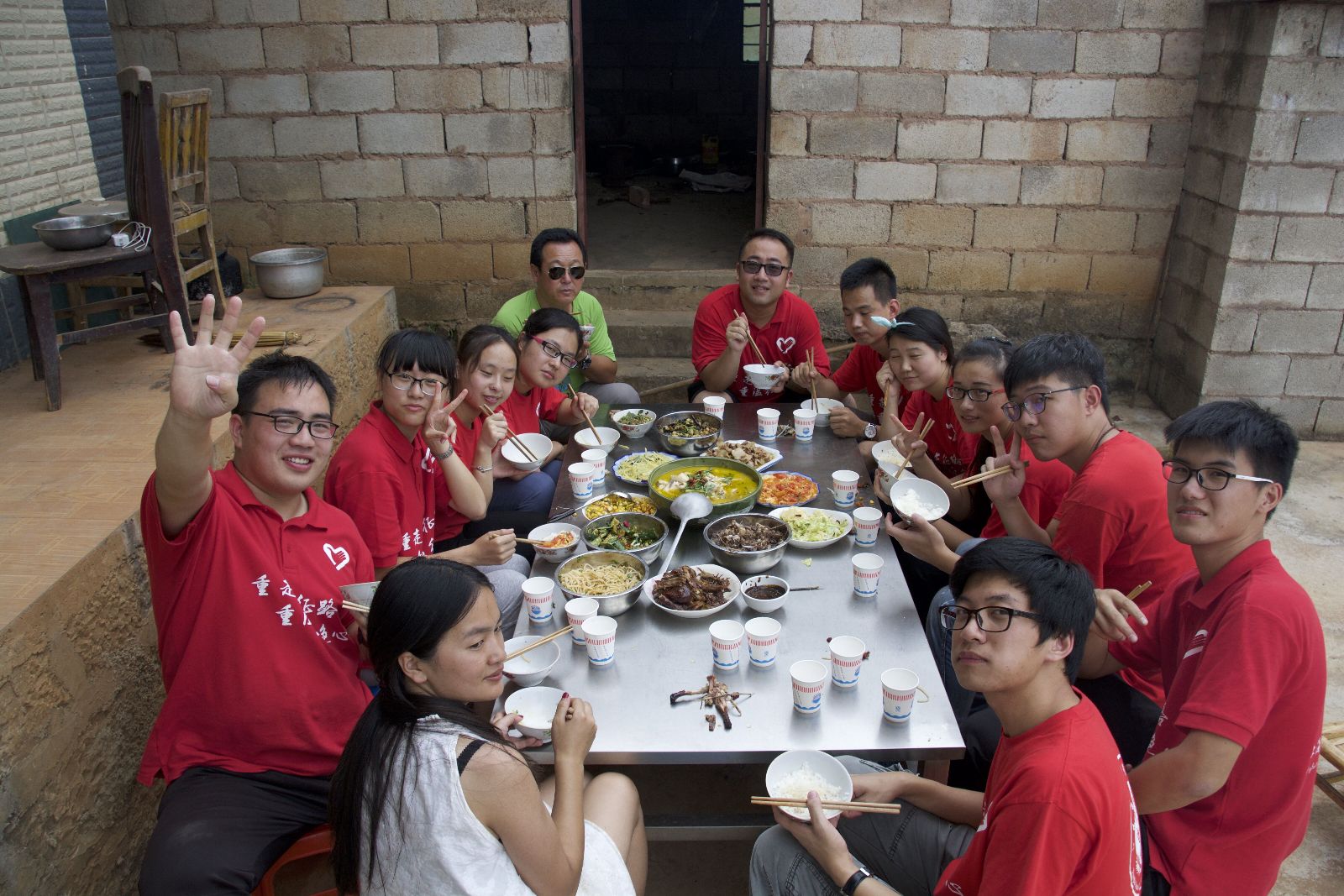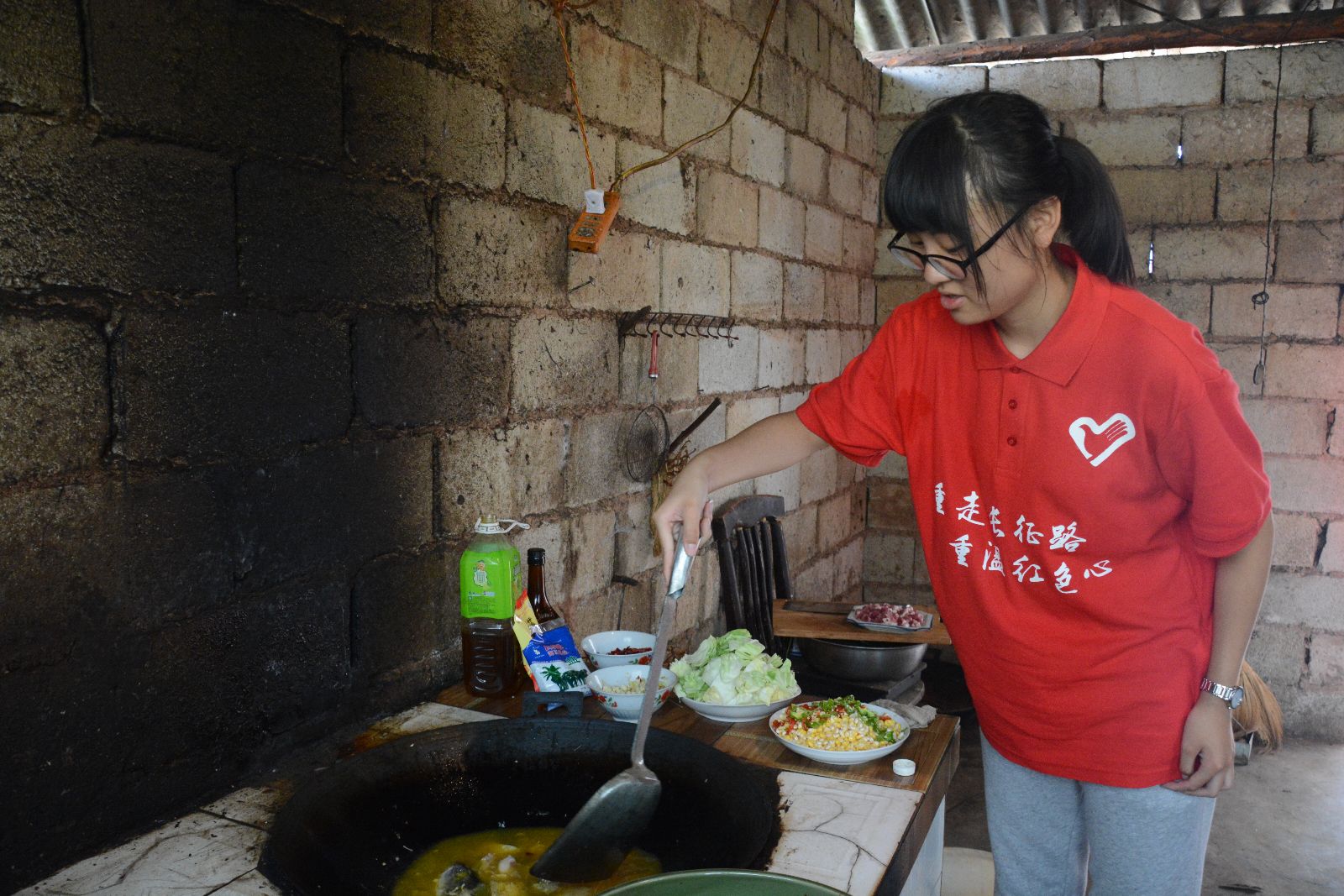 实践团一行还来到我院园艺园林系赵国建同学家中自制红军餐,感悟红军生活。师生们一起完成了摘菜、切菜、生火、做饭、炒菜等工作的分工之后,便立即投入到自制红军餐的任务当中。你洗菜,我刷碗,他掌勺,整个过程中分工明确、相互协作,很快就制作完成了一顿颇有意义的红军餐。制作完毕后,大家一起品尝了自制的红军午餐。