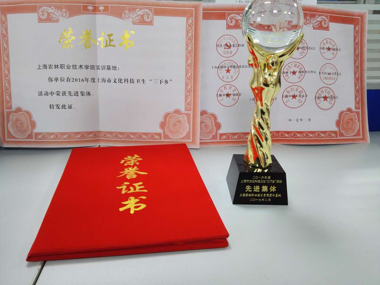 2月21日,在青浦区徐泾镇文化活动中心,2017年上海市文化科技卫生“三下乡”暨“文化育农”集中示范活动启动仪式举行,由此拉开了2017年上海市“三下乡”活动的大幕。启动仪式上,对2016年度市文化科技卫生“三下乡”活动的24名先进个人,36个先进集体和37个优秀项目进行了表彰。我院实训基地荣获2016年度市文化科技卫生“三下乡”活动先进集体。