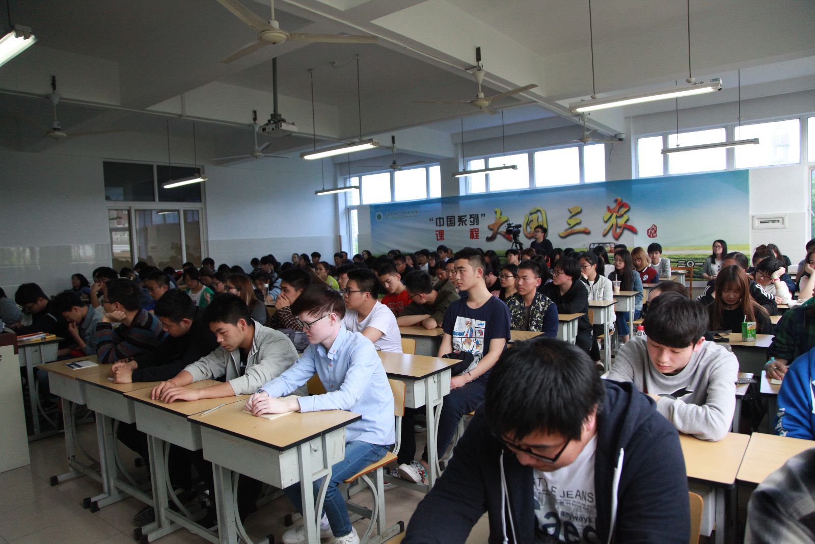 读懂三农,才能读懂中国。4月25日下午,在第一教学楼402教室,面对110多名师生,党委委员、副院长仲肈森开出《大国三农》课程第四讲“舌尖上的安全:执政能力的重大考验”。本课程遵循“为农服务 特色立校”的办学宗旨,结合学院实际,为帮助学生了解和认识国情,以形势与政策必修课的形式,为全体学生开出的上海高校“中国系列”课程之一,是落实全国和上海市高校思想政治工作会议精神,创新我院思政课教学改革的新探索。