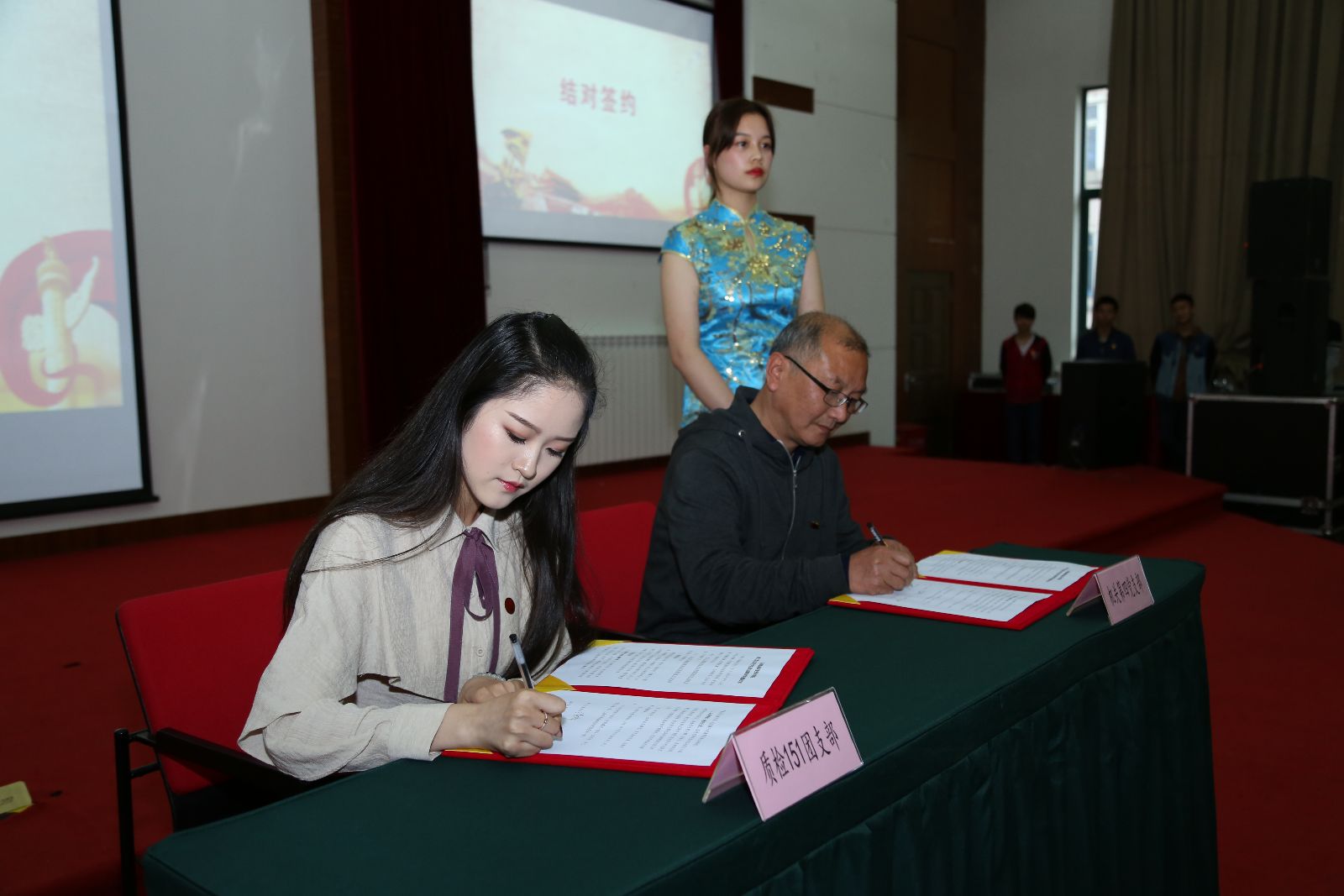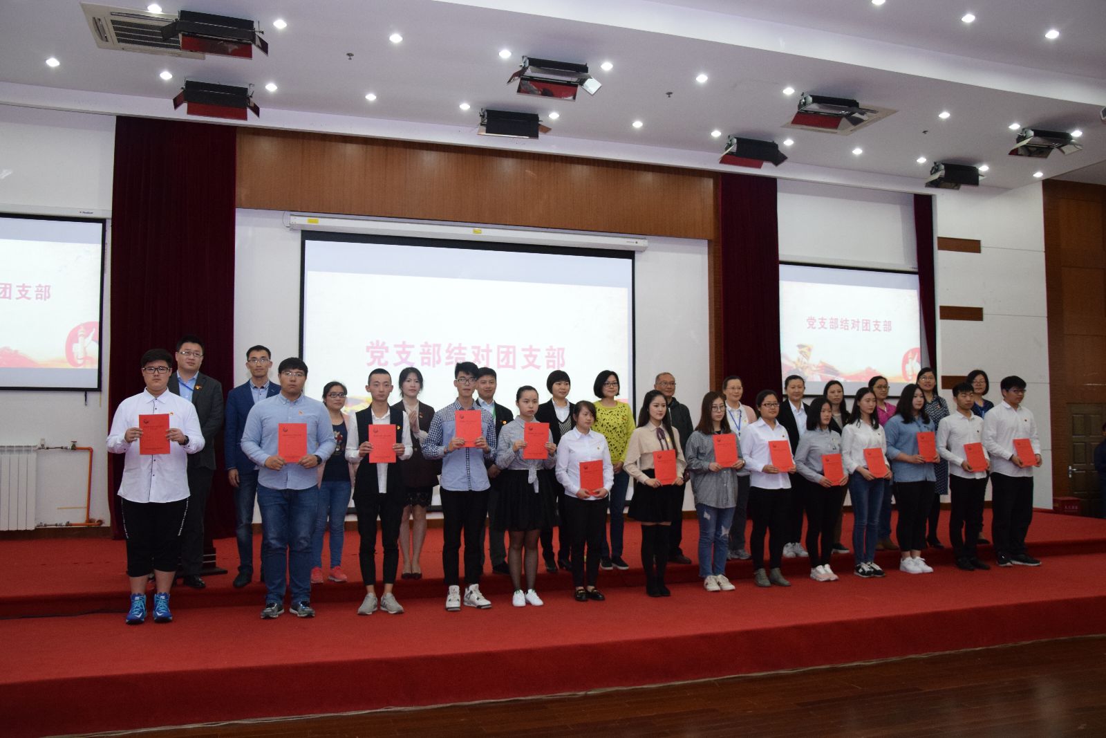 开幕式结束后,进行了青春向党献礼主题集会。按照“党建带团建”工作要求,切实发挥基层党团组织先进性和党支部示范、带动、引领作用,我院14个教工党支部与14个学生团支部进行了现场结对共建。共建内容包括普及党史党情教育、创先争优实践活动、团员青年价值引领、时政热点专题研讨、团员青年帮扶活动五个方面。通过共建活动平台、交流传授带动、引导答疑解惑、解决实际问题等途径,进一步转变工作作风,创新工作形式,深化学习内容,巩固党建带团建工作成果,提升基层党团组织的整体建设水平。
