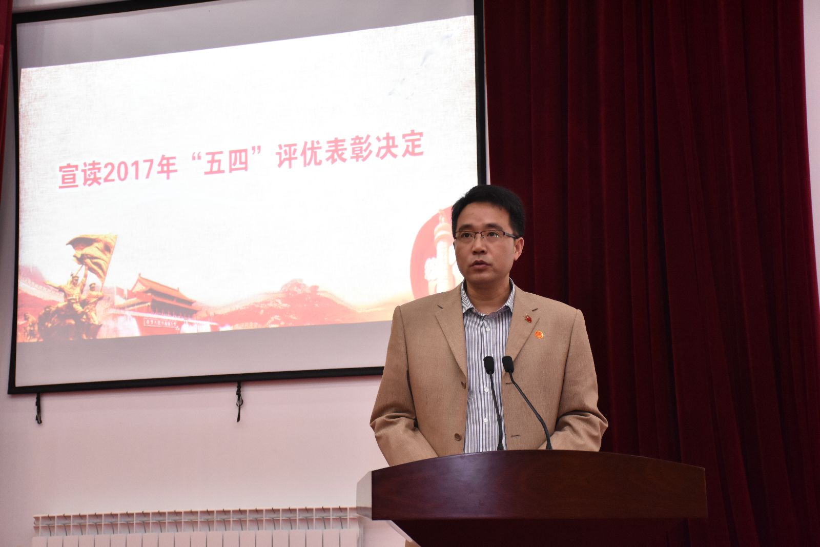 协管学生工作领导费国强宣读《共青团上海农林职业技术学院委员会、共青团上海市农业学校委员会关于2017年“五四”评优表彰的决定》。宋璐遥等170人荣获“优秀团干部”称号,焦斌等276人荣获“优秀团员”称号,徐慧明等25人荣获“最美团支书”称号,动医151班团支部等15个团支部荣获“先进团支部”称号。魏华、俞锦禄、仲肇森、谢锦平现场对获奖集体和个人进行了颁奖。