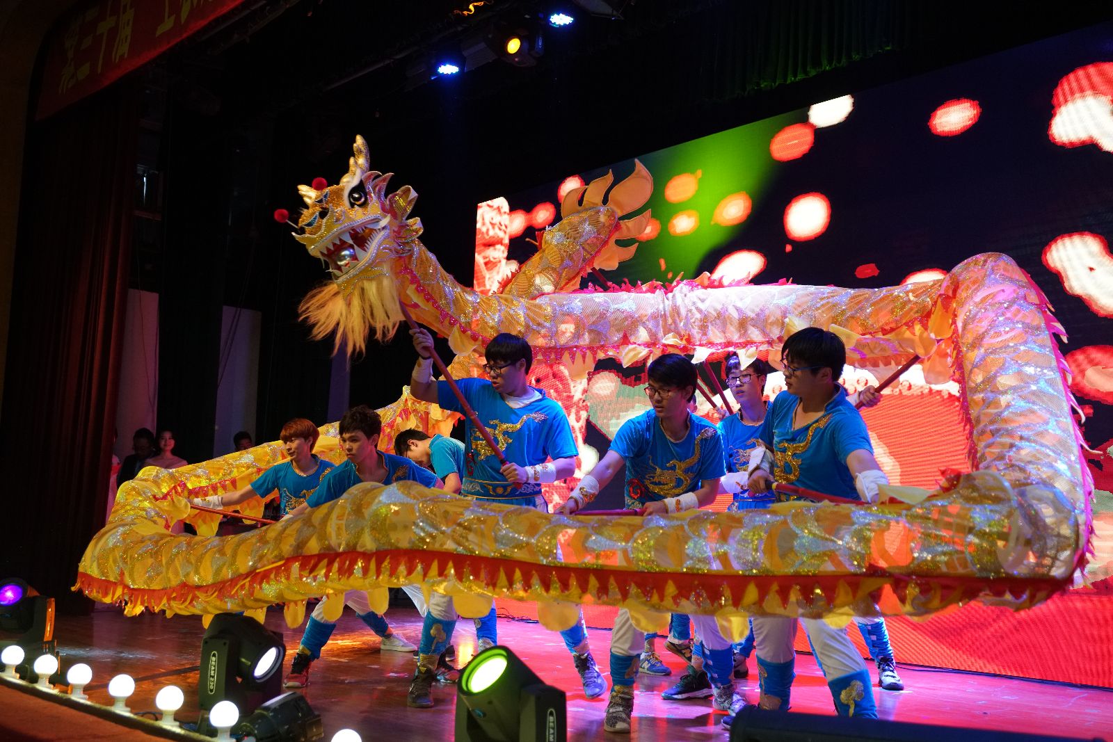 农校舞龙队的舞龙表演《龙鼓欢腾》拉开了整场演出序幕。