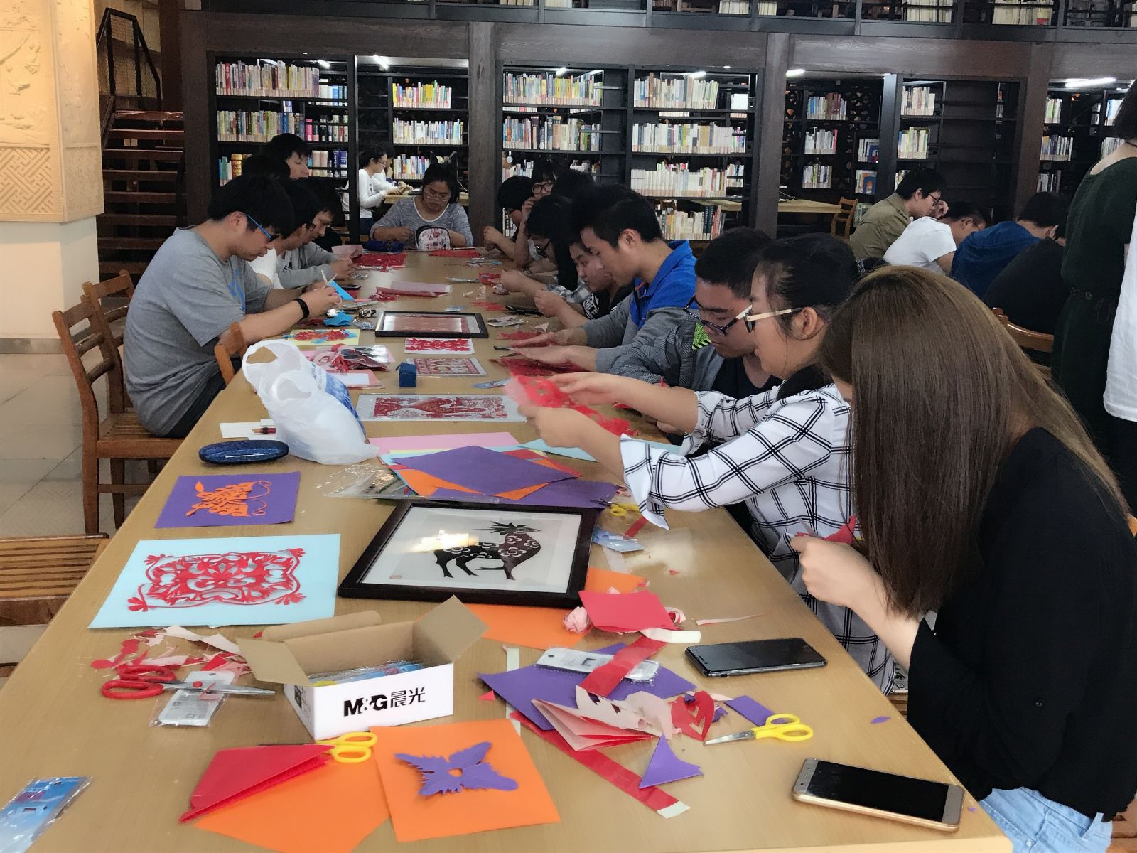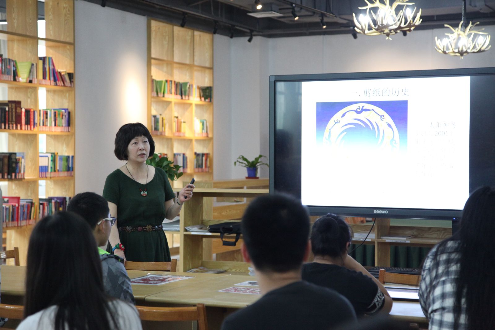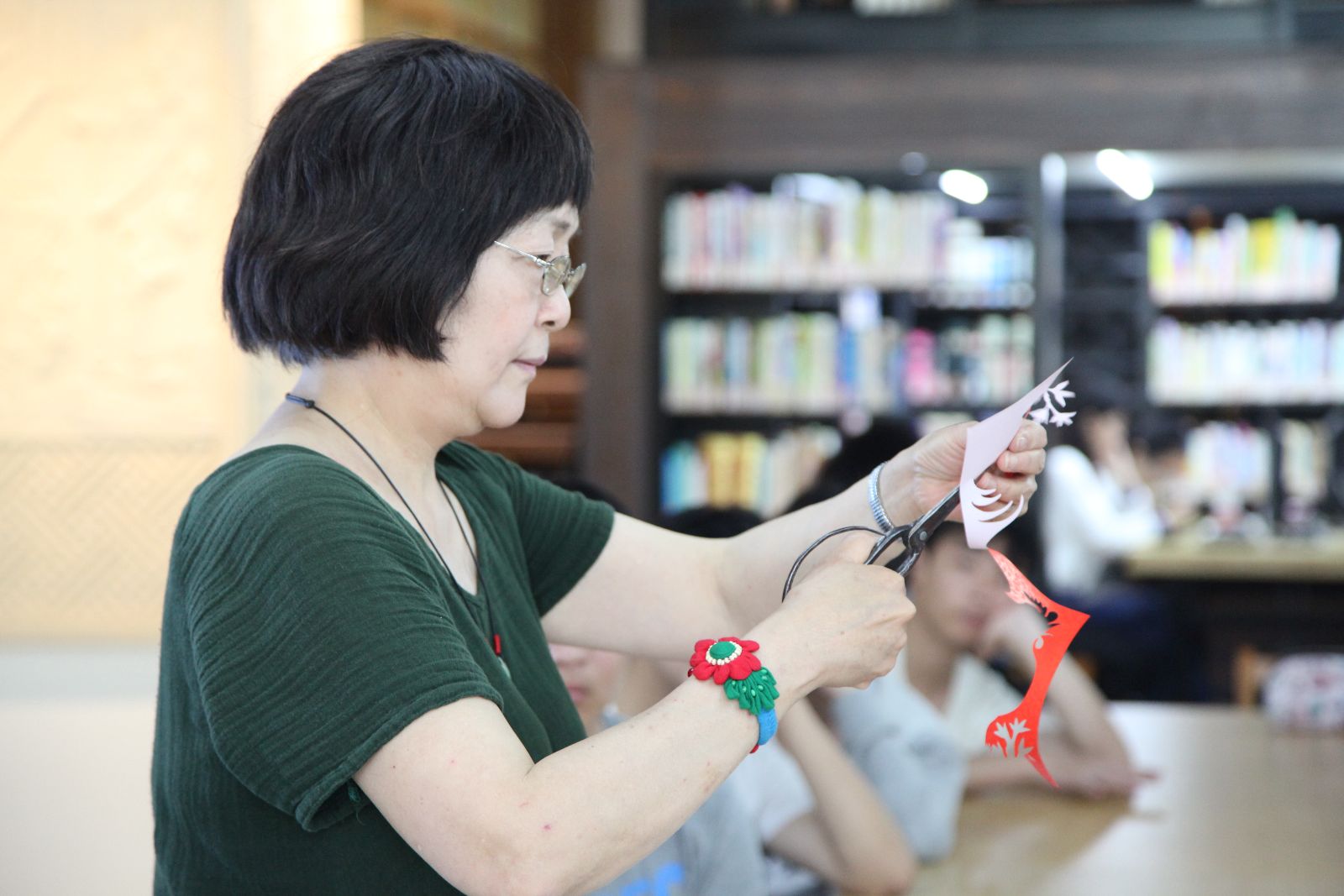 5月23日,国家级非物质文化遗产项目“上海剪纸”走进校园,代表性传承人奚小琴大师在图书馆二楼综合阅览室进行现场讲解、创作,让师生近距离接触中国优秀传统文化,感受大师艺术风采。宣传处、团委、图书馆、风景园林技术系相关负责人和专业教师、园林163班学生共40余人参与现场体验。