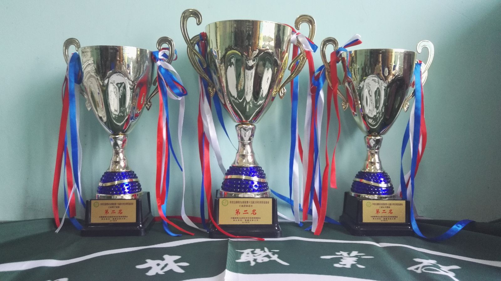 男子团体第二名、女子团体第二名、团体总分第二名奖杯