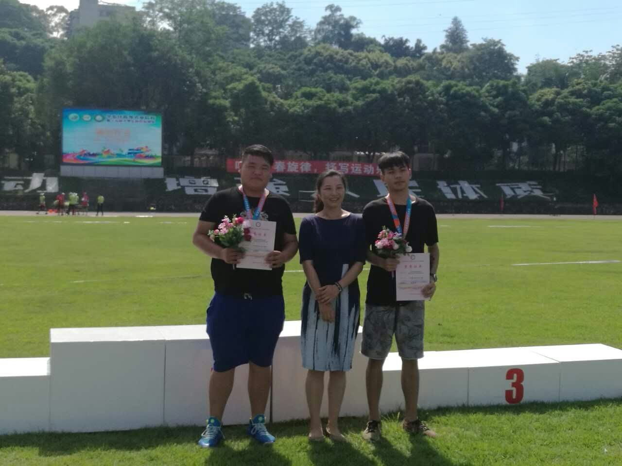 在学院领导和各系部的鼎力支持下,经过前期选拔,基础部于5月6日正式成立田径队。在教研室主任蒋文怡以及吴超、刘培君、吴相表、孙晓迪4位教练的指导下,12位参赛队员经过1个多月的刻苦训练和10天暑期集训,最终以骄人的成绩出色完成此次运动会,尤其是王昌阁一人独揽“男子跳远”、“男子三级跳远”2个赛项的2枚金牌,田径队在运动场上以过硬实力和默契合作为学校争得多项荣誉。