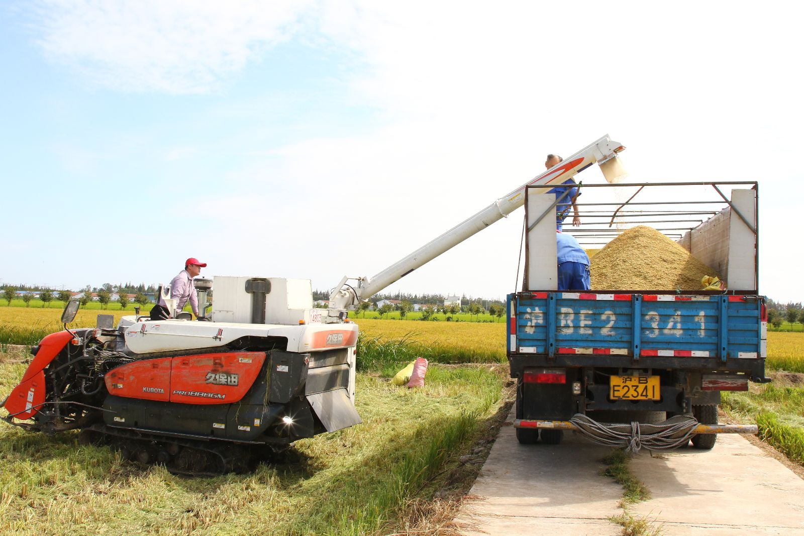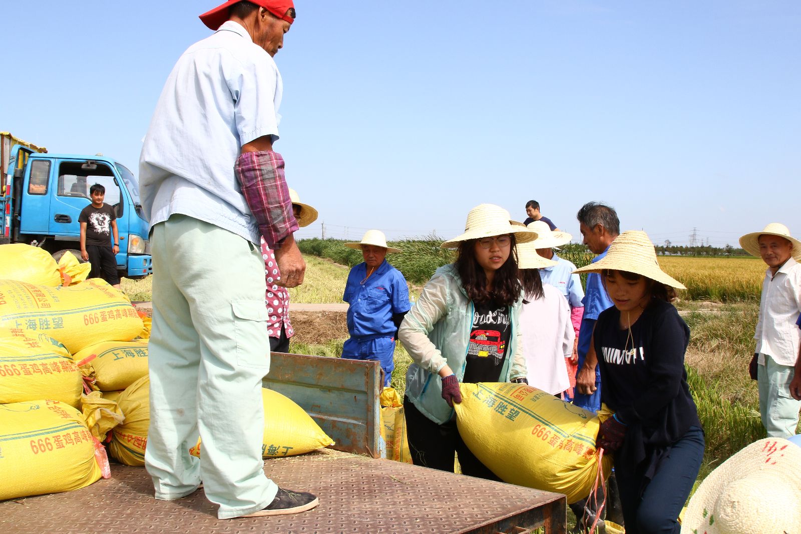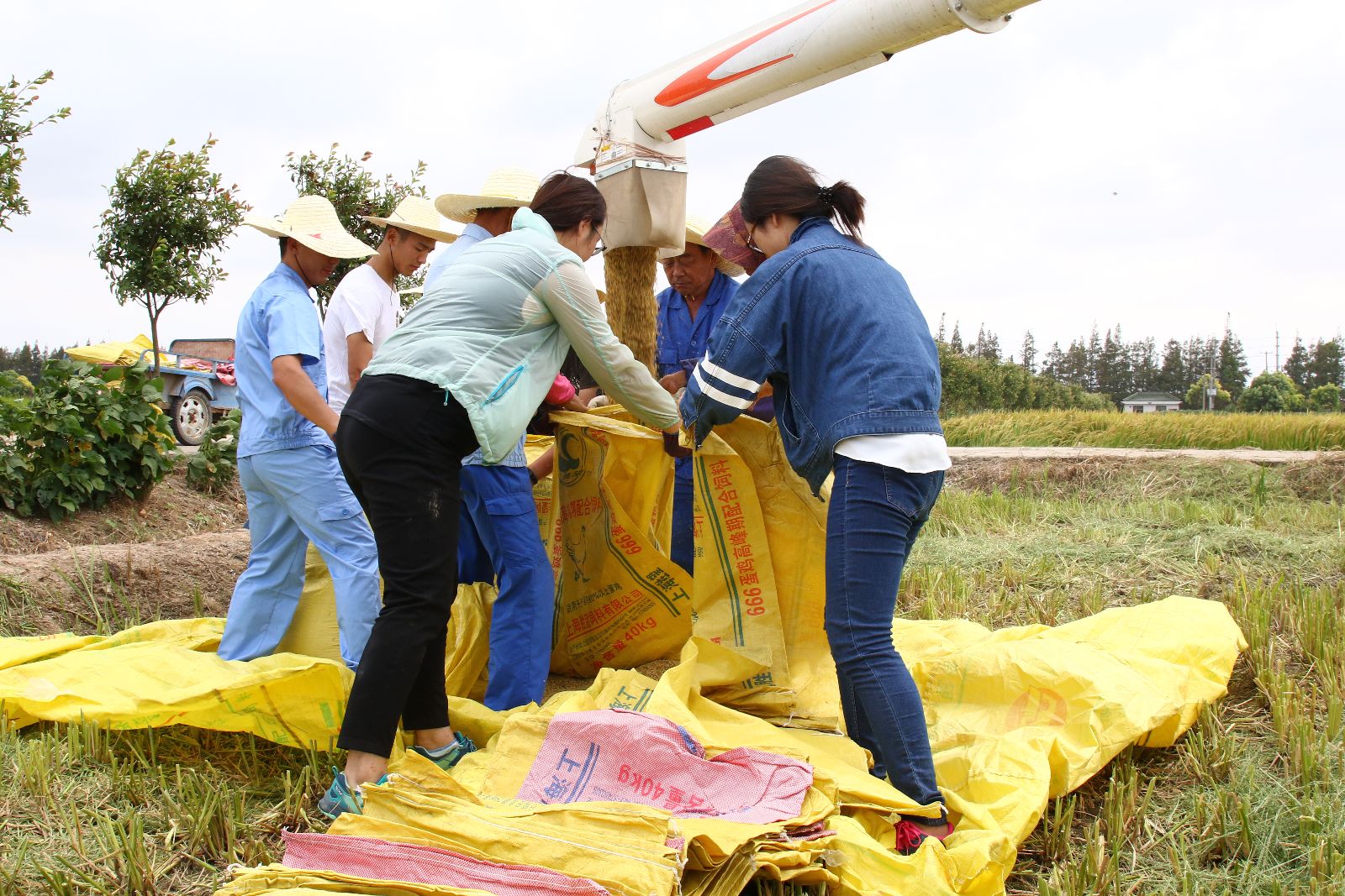 学院位于奉贤海湾的实训基地自2013年种植水稻以来,从生产普通大米到无公害大米,再到如今严格执行农业部绿色食品生产标准的绿色大米,种植技术不断提高,在各个环节上精益求精。今年,首次试行稻谷从收割机直接卸到卡车,省去人工装袋、捆扎、搬运的过程,大大提高了抢收效率。让教职工吃上绿色优品质的大米,是良好的开端;让学院自产大米走向市场,创出品牌,不断发扬“尚农乐耕,生生不息”的精神,这是美好的愿景。