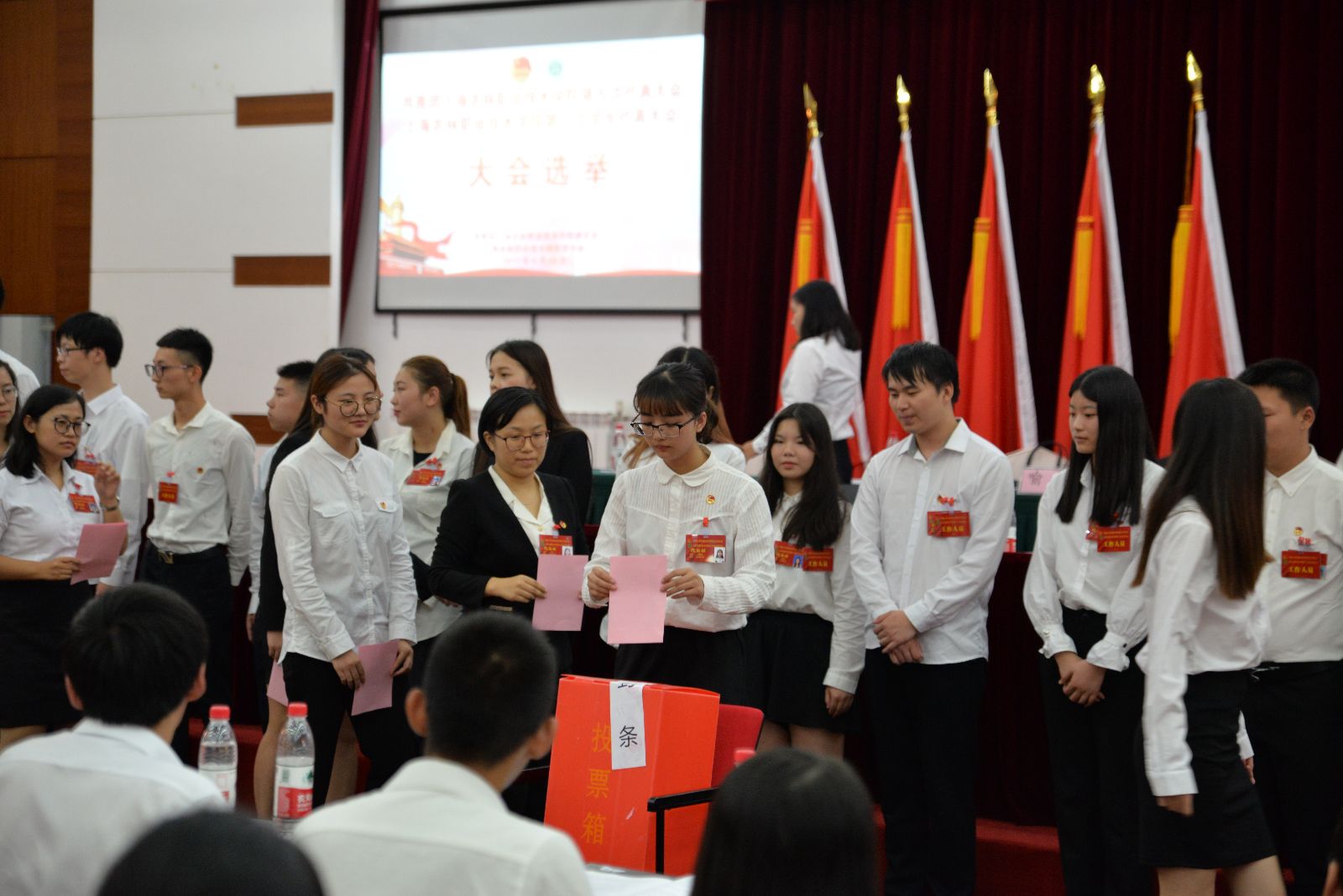当日下午,大会以无记名投票方式,选举产生了由冯靖、刘雅姗、李莹、邱晓梁、张楠、胡慧春、秦雪珠、盛少帆、康佳乐组成的共青团上海农林职业技术学院第五届委员会和朱丹、闫广文、杨泽东、吴嘉源、陈晓倩、罗松、侯溢、秦雪珠、倪楠楠、屠星辰、翟颖培组成的上海农林职业技术学院第八届学生委员会。