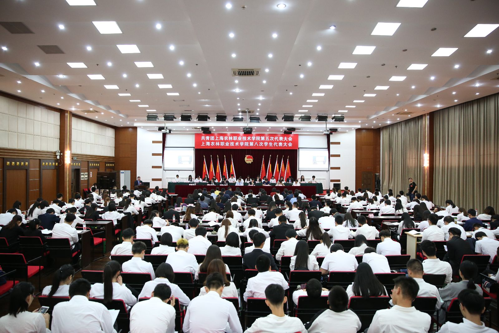 最后在高昂的团歌声中,共青团上海农林职业技术学院第五次代表大会、上海农林职业技术学院第八次学生代表大会落下帷幕。