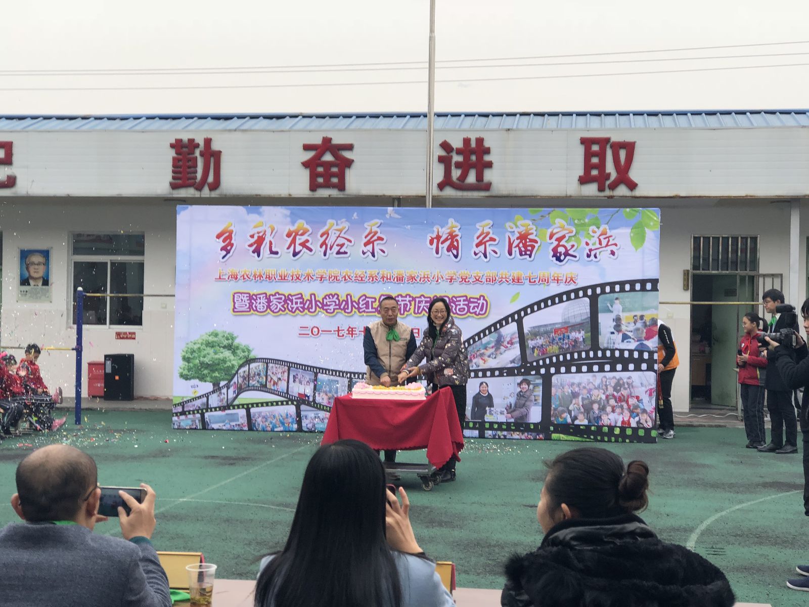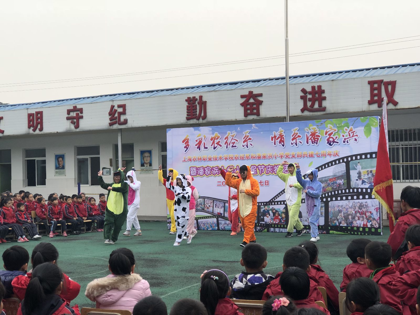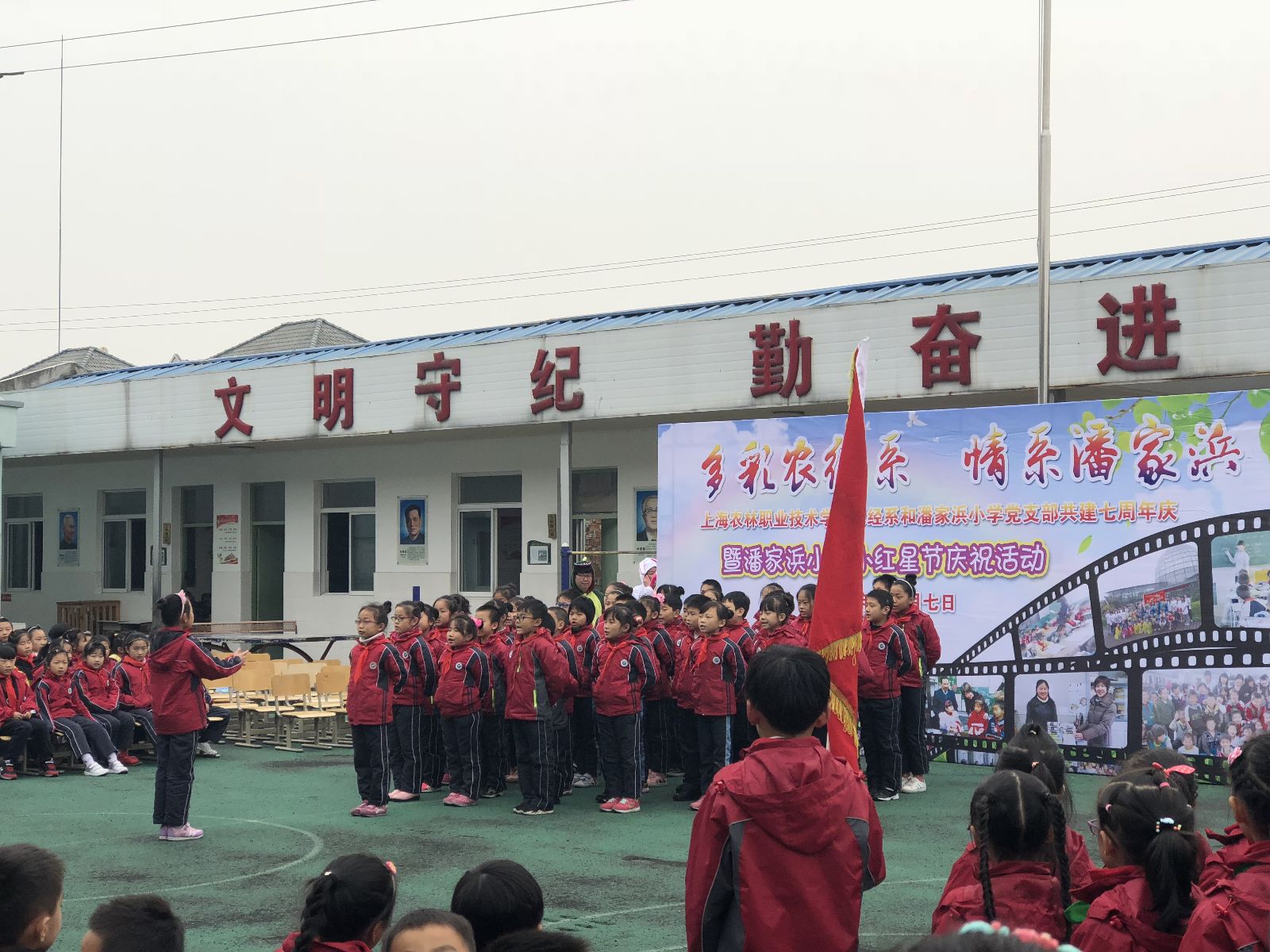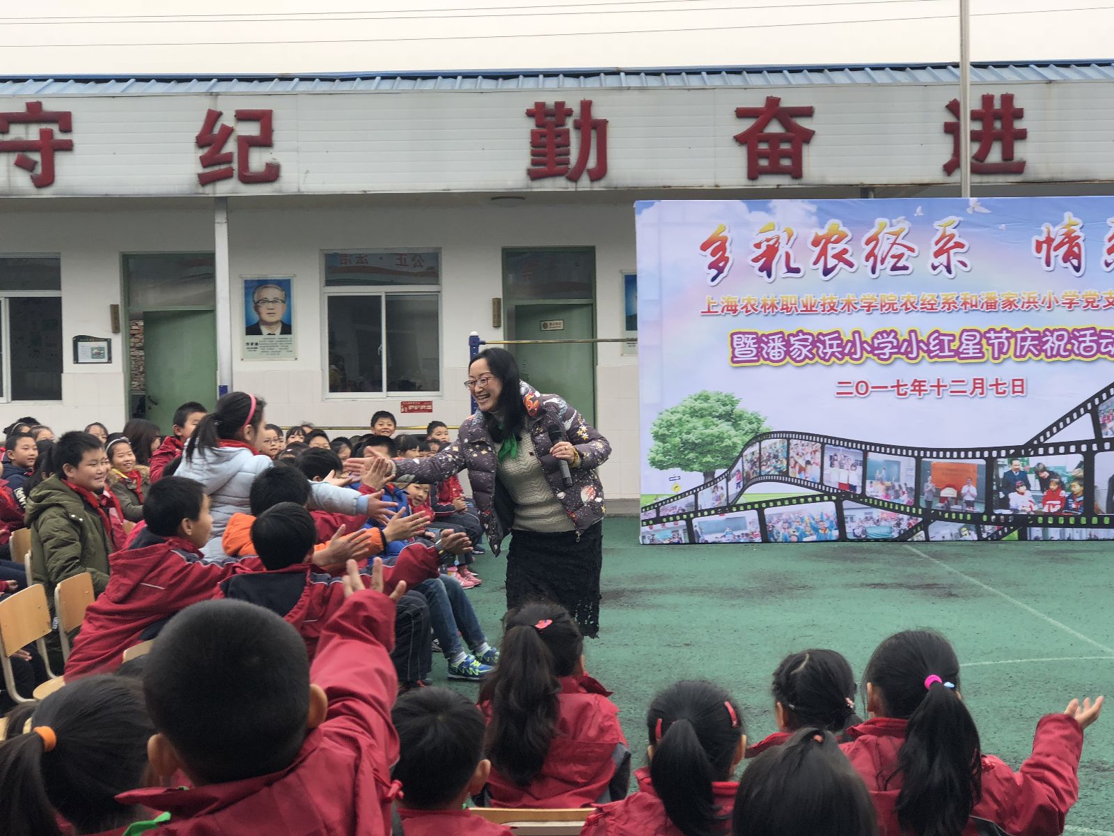 12月7日,“多彩农经系,情系潘家浜”农业经济管理系与潘家浜小学党支部共建七周年暨潘家浜小学“听党话,跟党走,争做新时代好苗苗”少年儿童小红星节庆祝活动,在潘家浜小学举行。松江区教育局视导员刘畊芳,潘家浜小学校长吴逸文,农业经济管理系党支部书记、副主任沈悦,副主任路以兴,风景园林系党支部书记、副主任张海娜,农业信息工程系党支部书记、副主任袁少英参加此次活动。