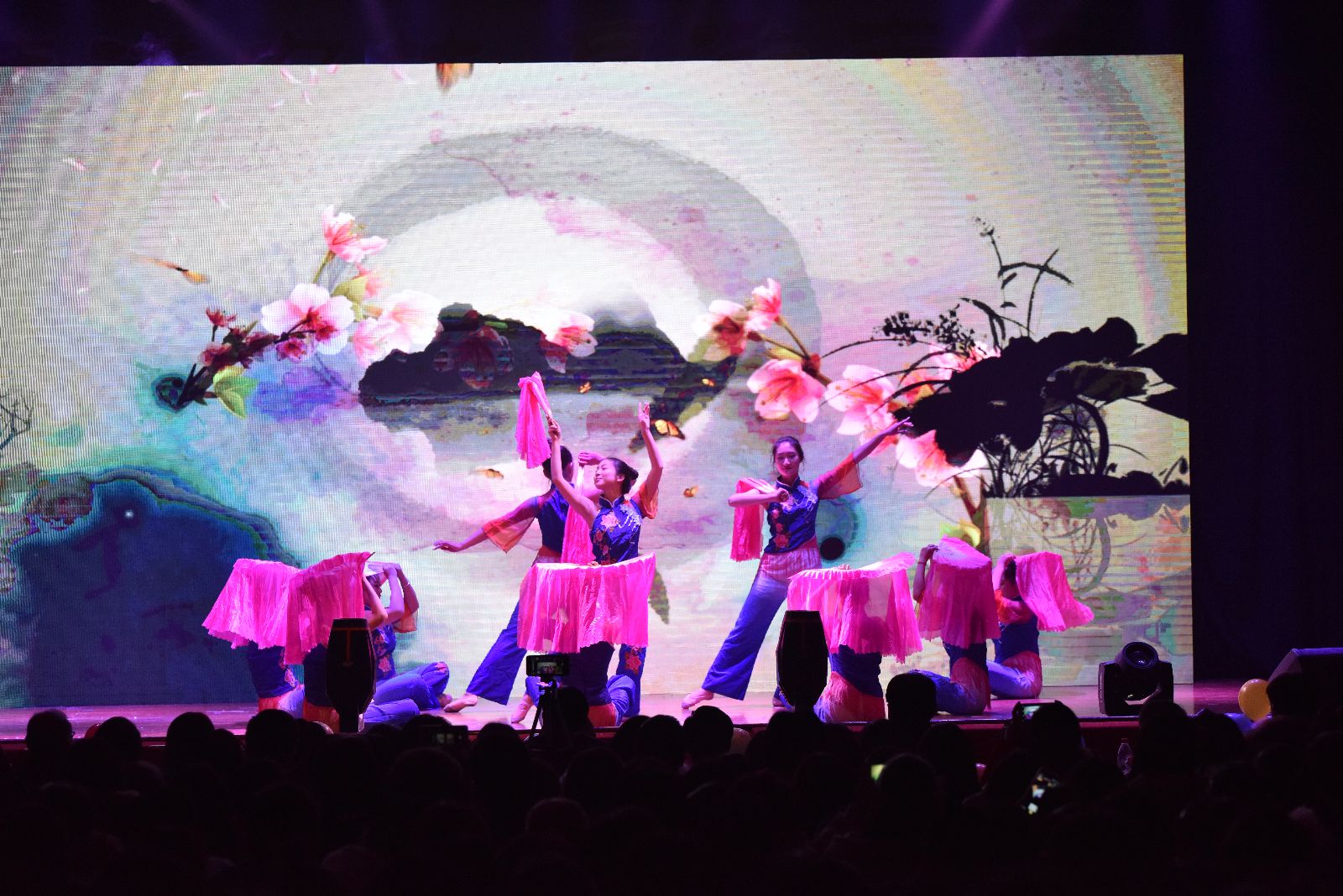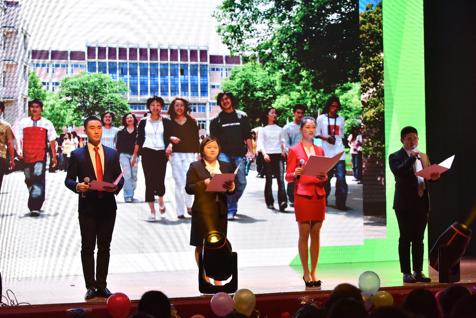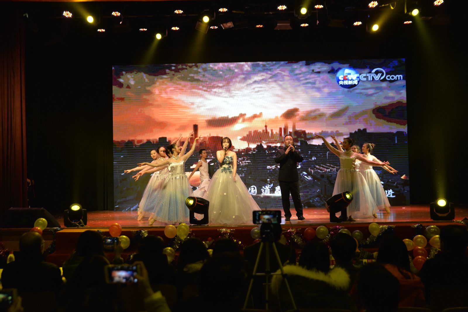 一开场,色彩斑斓的灯光秀即让现场师生享受了一次视觉盛宴。青春激昂的开场舞《欢天喜地闹新春》拉开了2018年元旦文艺晚会的序幕。歌曲串烧《逐梦青春》、民族舞《我的祖国》、小品《易班超级男生》、情景朗诵《青春报告》、舞蹈《陌上花开》等节目凸显了以青春活泼为主旋律的校园文化的勃勃生机,乐社、街舞社带来的社团展演《歌舞青春》展现了学子们的蓬勃朝气和昂扬向上的精神面貌,音朗诵《上农风采》坚定了广大师生坚守农业、服务农村的决心和信心。第二课堂师生带来的魔术表演变幻莫测、奇妙绝伦,引发全场师生的热烈欢呼,8位女教师带来的舞蹈《烟雨江南》更是将现场气氛推向高潮。最后,在歌伴舞《不忘初心》的精彩表演中,晚会落下帷幕。