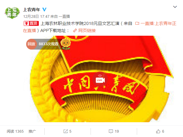 今年晚会丰富了演出形式,在团委官方微博“上农青年”平台进行了现场网络直播,观看人数达8833,并在线上实时互动,进一步扩大了学院的知名度和影响力。