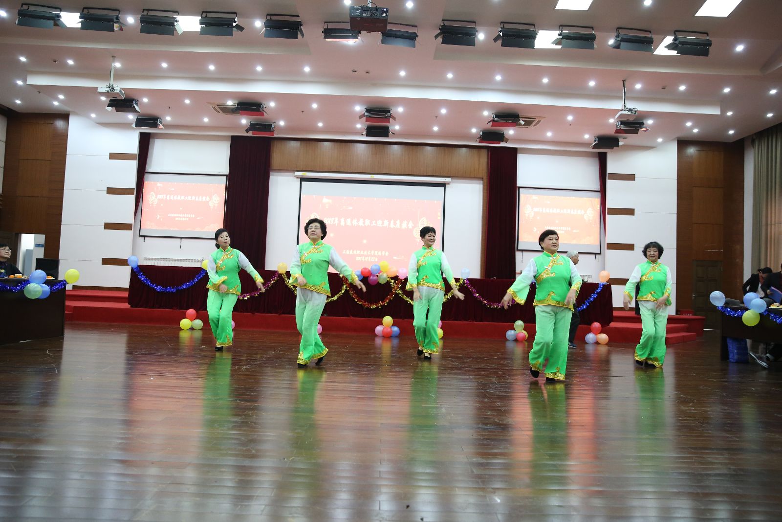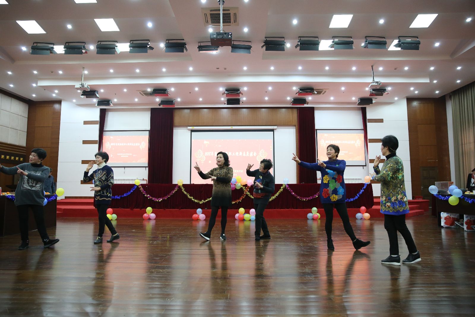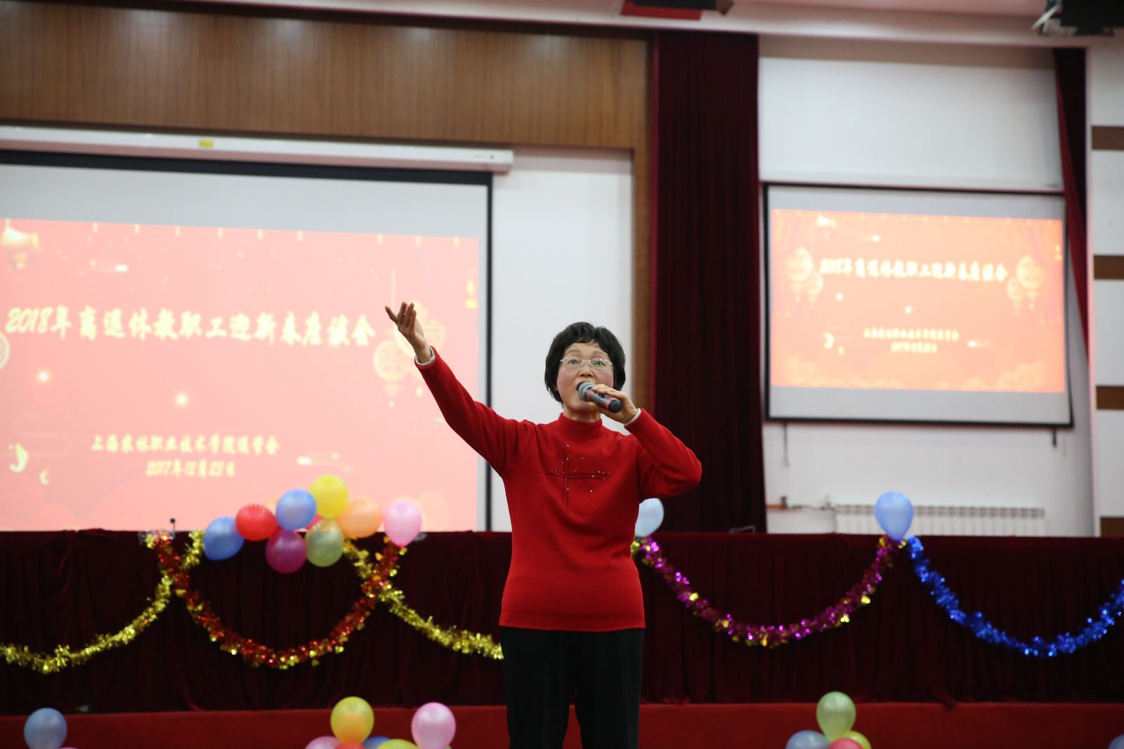 沪剧、越剧、男声小组唱、女声独唱、韵律操、诗朗诵、华尔兹……离退休老师们用丰富多彩的节目喜迎新春的到来,欢乐的笑容、舞动的身姿、美妙的歌声、动人的旋律,舞台上载歌载舞,舞台下交流心得,共话未来。