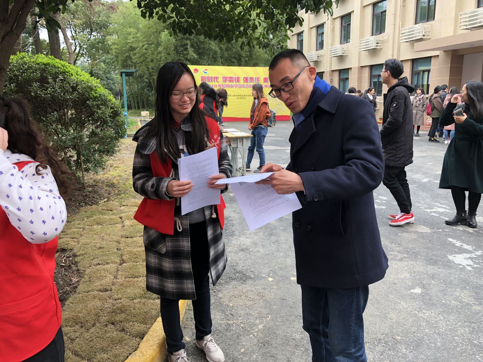 今年3月5日是毛泽东同志号召“向雷锋同志学习”55周年纪念日,也是第19个“中国青年志愿者服务日”,院团委组织各系部志愿者服务队在校内外开展学雷锋志愿服务集中行动,党委副书记、副院长俞锦禄亲临活动现场,与志愿者们互动交流。