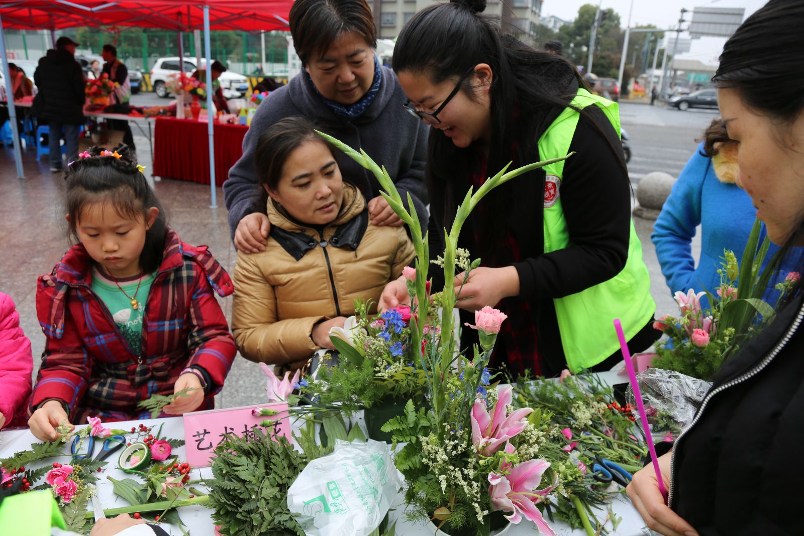 3月3日,在地铁九号线体育馆站和醉白池公园站,我院10余名志愿者开展了艺术插花和家庭宠物医疗咨询便民服务,同学们现场教授插花技巧,为路人提供宠物咨询,分享养宠经验,受到众多市民关注。