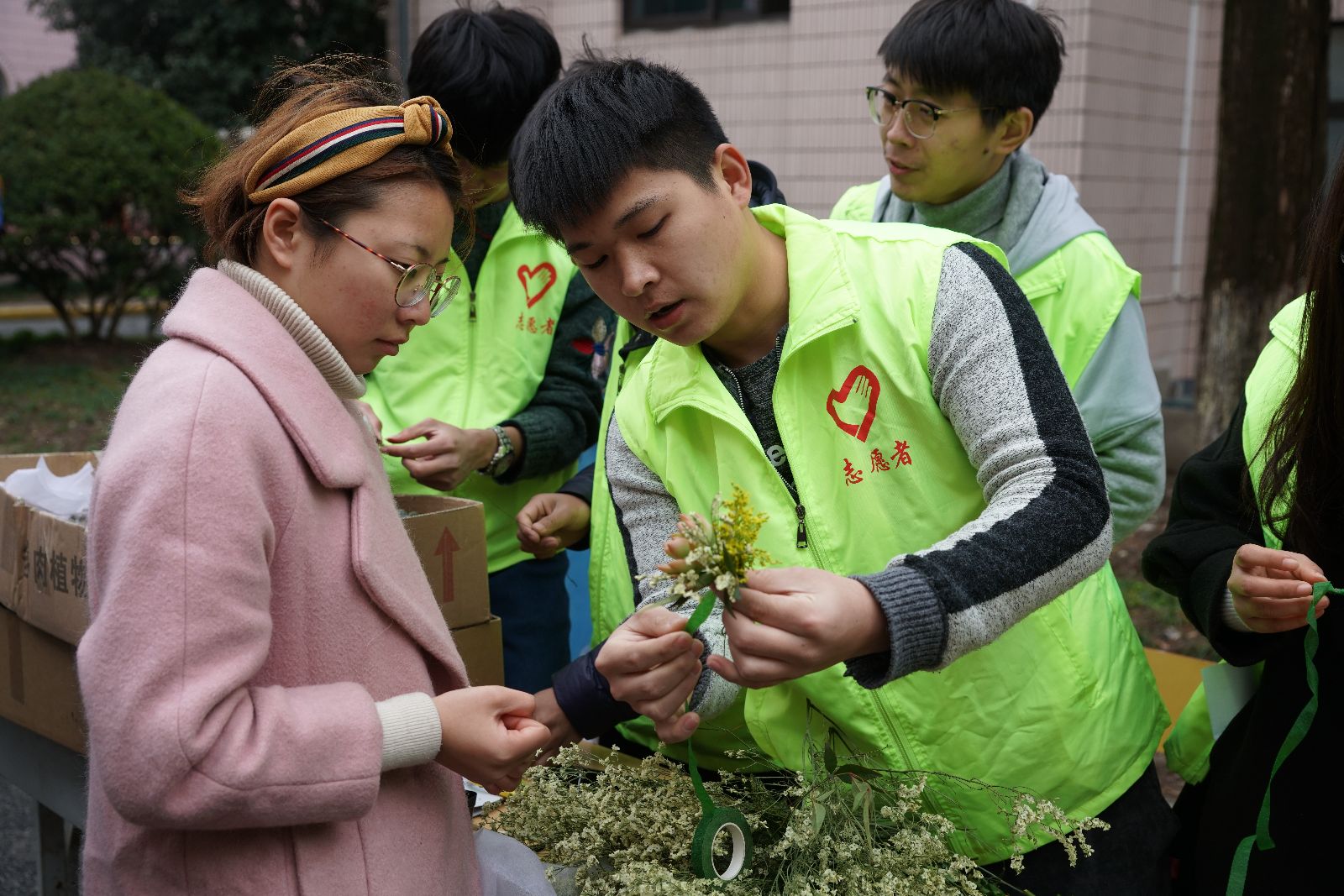 3月5日,在学生事务楼广场,开展了养宠知识宣传、绿植盆栽赠送、多肉胸针制作、插花技巧现场教学、超声波清洗机清洗眼镜、免费手机贴膜、科普校园植物等丰富多彩的志愿活动,60余名志愿者为近400余名师生提供了志愿服务,在实践中传承雷锋精神,将学雷锋活动落到实处。