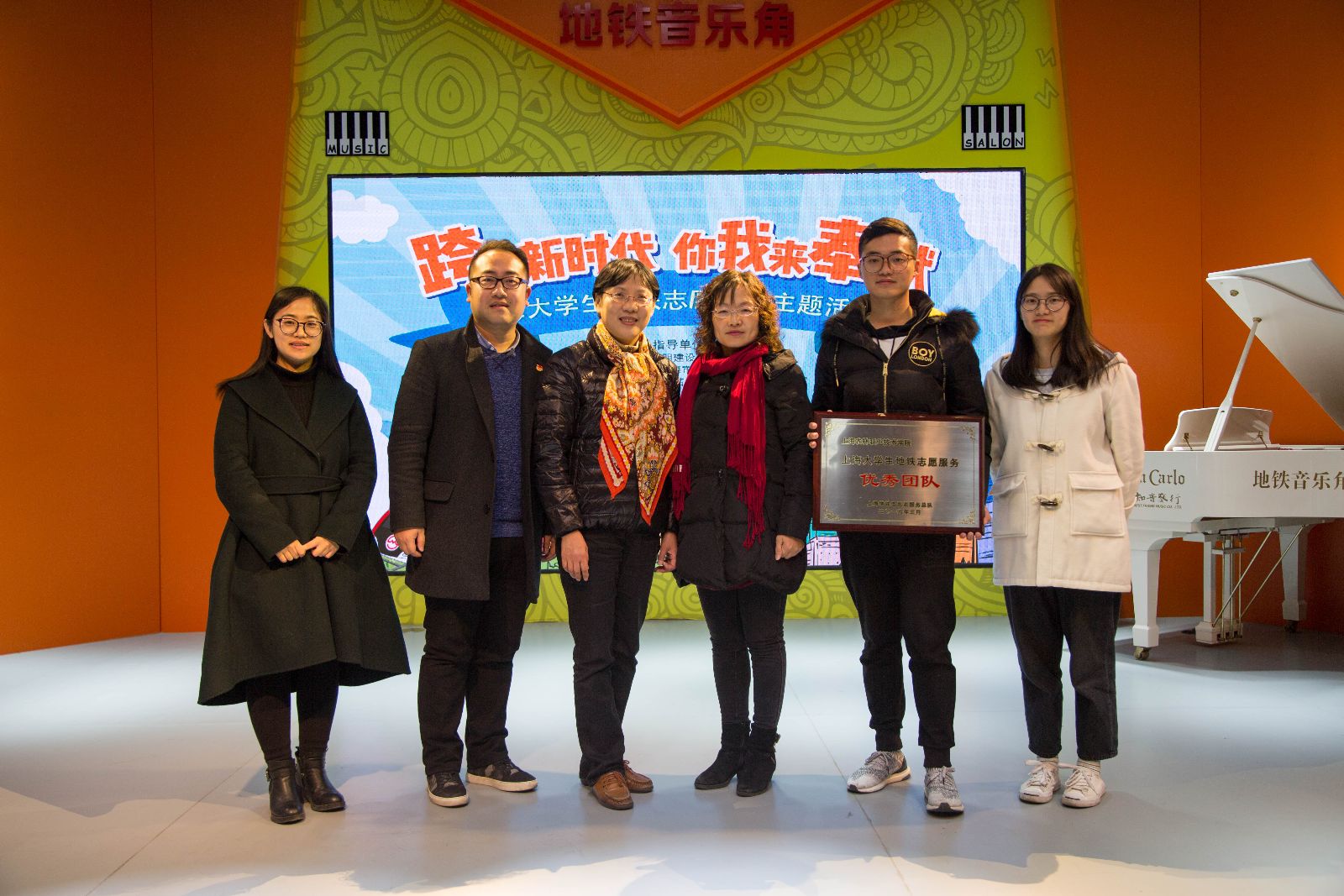 今年是毛泽东主席题词“向雷锋同志学习”55周年,也是上海地铁正式通车25周年。3月9日下午,“跨入新时代 你我来奉献——上海大学生地铁志愿服务主题活动”在地铁一号线人民广场站音乐角举行。市文明办副主任姜鸣、团市委副书记丁波、上海申通地铁集团有限公司党委副书记葛世平及相关高校文明办和高校团委同志出席,我院宣传处处长樊清誉、院团委书记胡慧春、动科系团总支书记张楠及轨道交通志愿服务队的志愿者代表参加了本次活动。