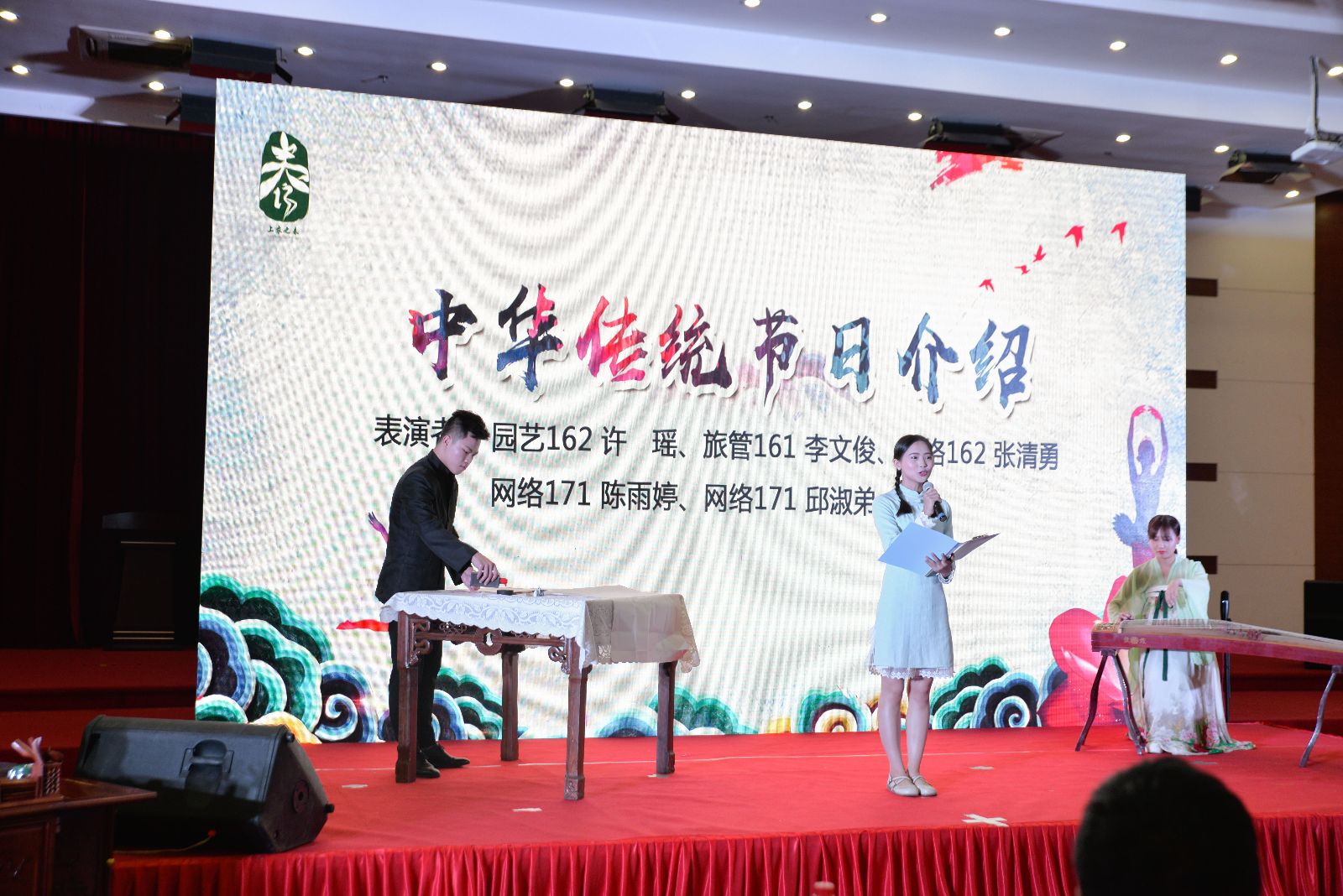开幕式分《传统文化育人文》《渊源农耕浓人情》《文化自信聚人心》三个篇章。由潘家浜小学学生带来的诗歌朗诵《三字经》拉开活动序幕,汉服展示、中华传统节日介绍、舞蹈《采薇》等让现场师生感受到,在漫长发展中沉淀形成的优秀中华传统文化是中华民族的强大精神纽带。渊源农耕浓人情篇章。通过介绍二十四节气的由来与应用,呼吁要利用多种有益方式将二十四节气文化精髓代代相传。诗朗诵《上农韵》、校歌表演等节目激励全体上农人传承“尚农乐耕 生生不息”的校训精神。文化自信聚人心篇章。大家共同宣读青春奋斗倡议书。通过青春访谈,上海市优秀团员获得者刘雅姗、学院轨交志愿团队负责人李娜和献血标兵赵文静现场分享了自己关于青春理想,青春活力,青春奋斗的经历与感悟,赢得师生阵阵掌声。原创快板《十九大精神放光芒》,展现着上农青年奋发向上、积极进取的精神风貌。全体上农人将不忘初心,牢记使命,坚守农业,服务农村,携手同行,共创新辉煌。