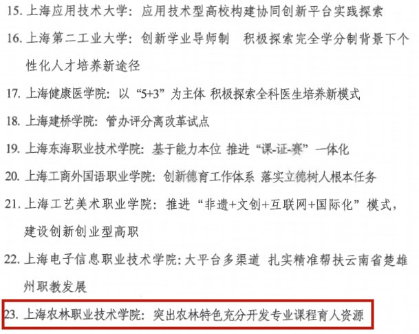 近日由沪教综【2018】2号文获悉,学院2017年《突出农林特色充分开发专业课程育人资源》案例入选上海市教育综合改革典型案例。