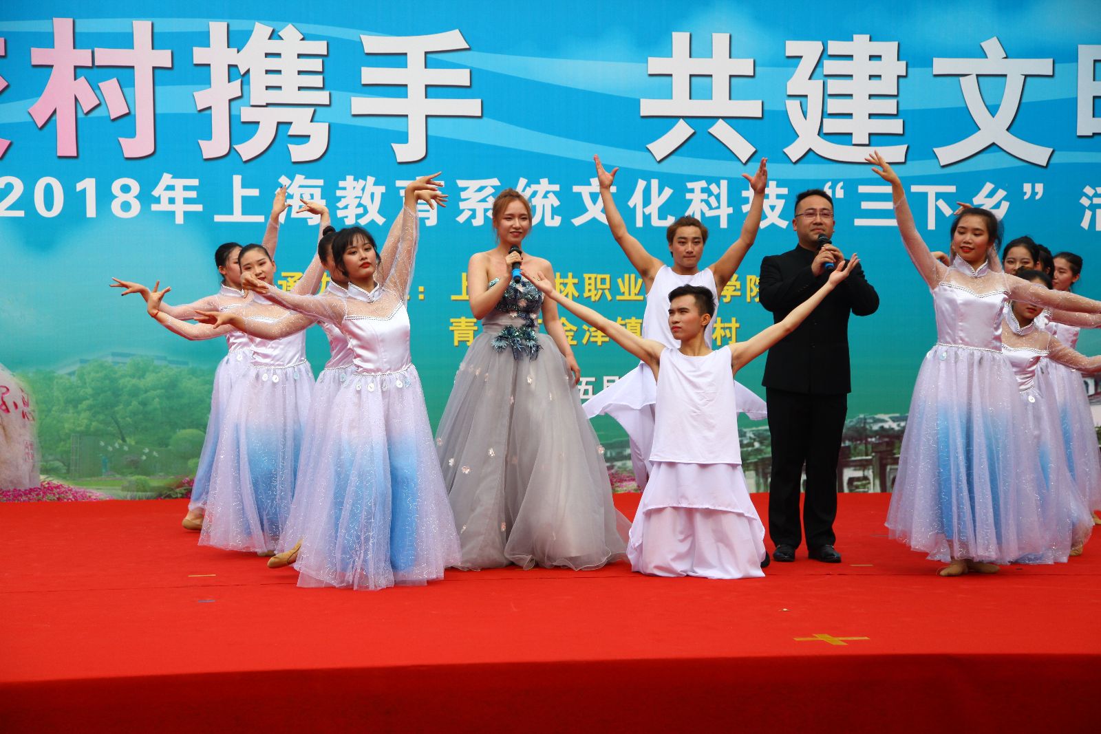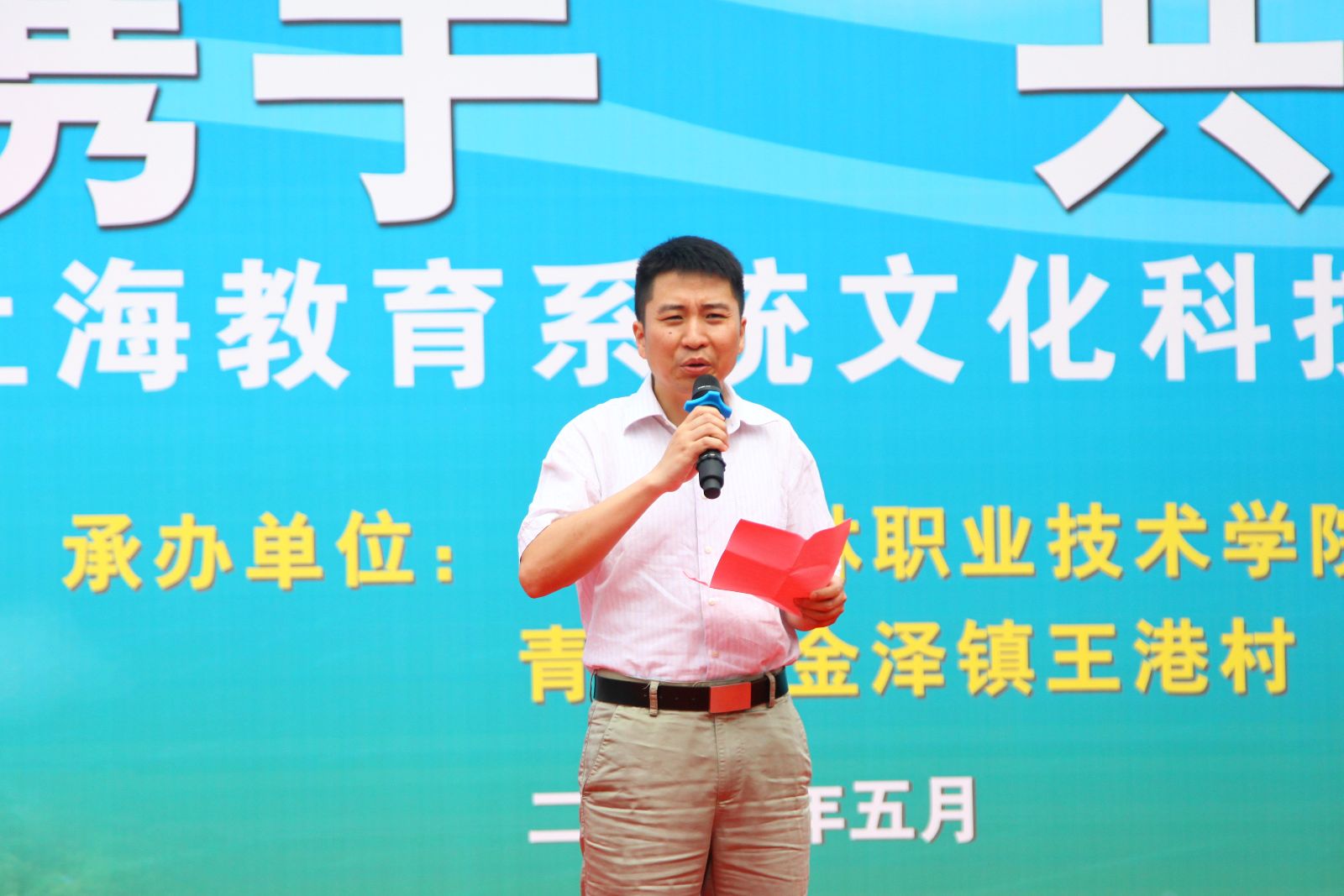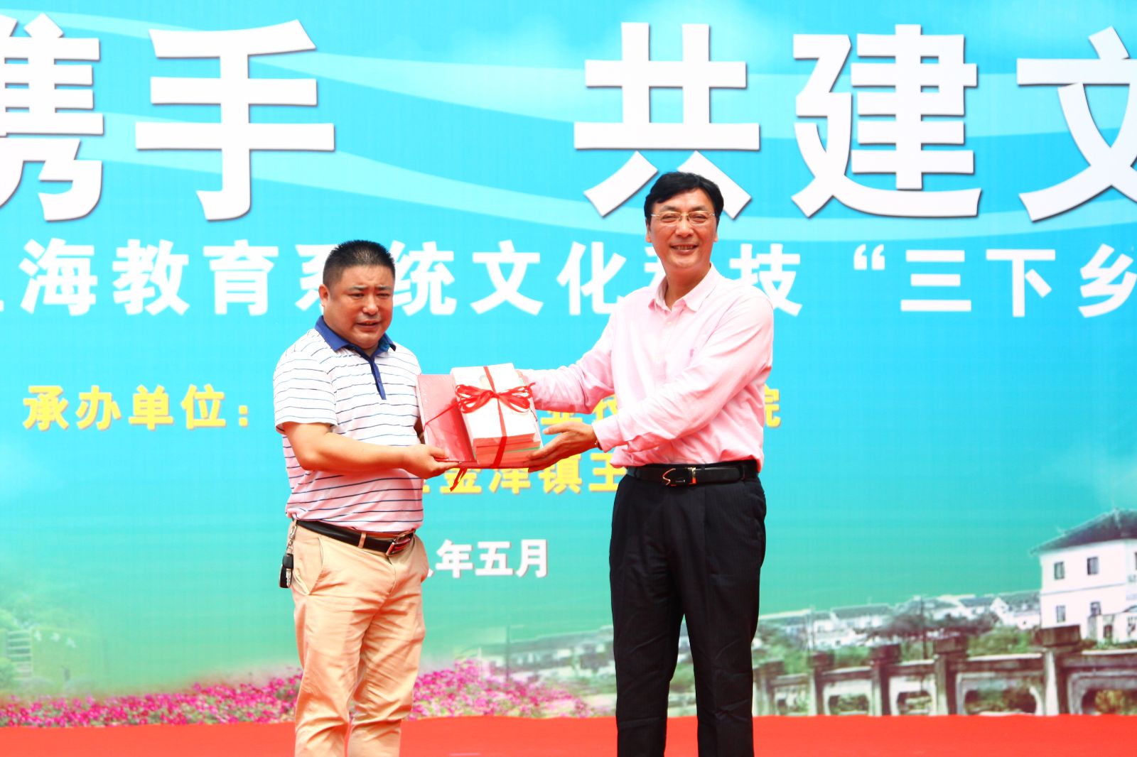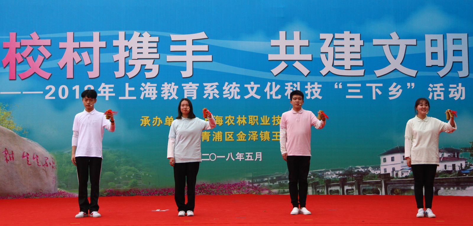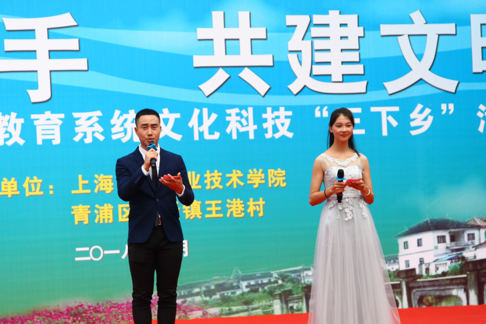 5月27日下午,学院赴青浦区金泽镇王港村开展“校村携手 共建文明”2018年上海教育系统文化科技“三下乡”活动。党委副书记、副院长俞锦禄出席并代表学院向王港村党支部赠送一批党建书籍,金泽镇党委委员马臣、副镇长庄跃华出席,学院相关部门负责人、支部书记、农业专家及百余名师生,王港村两委成员及近200名村民参与文明共建活动,场面热闹非凡。