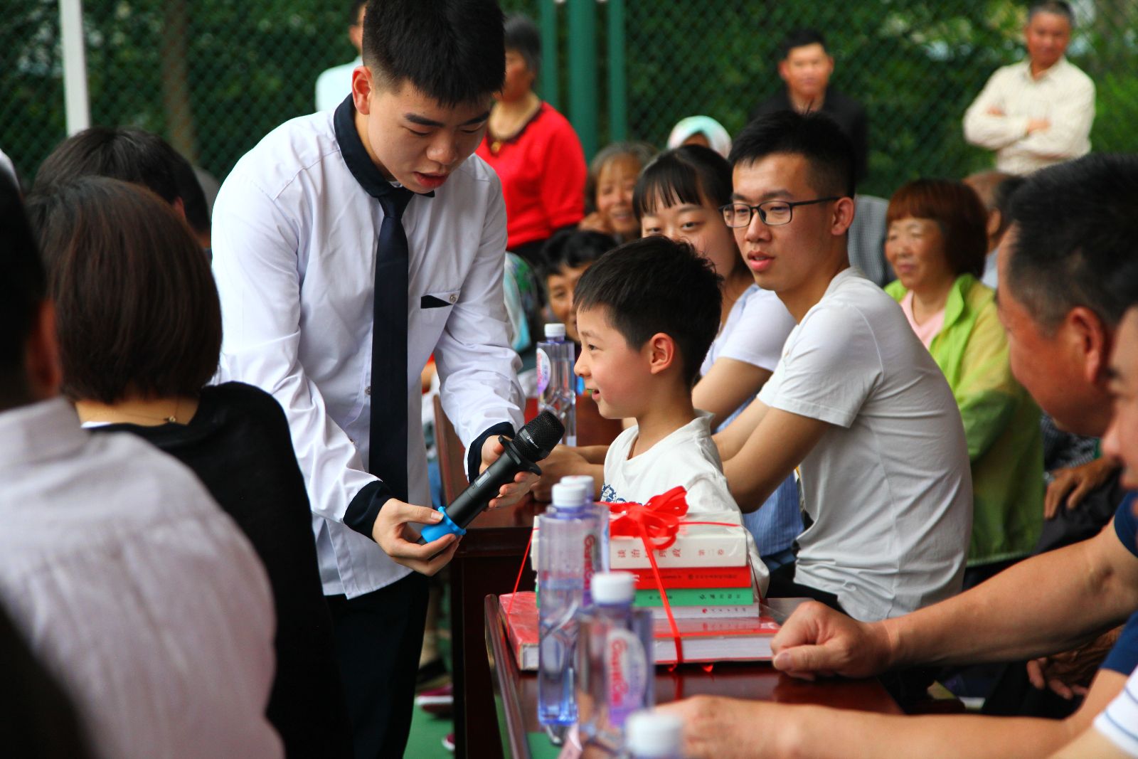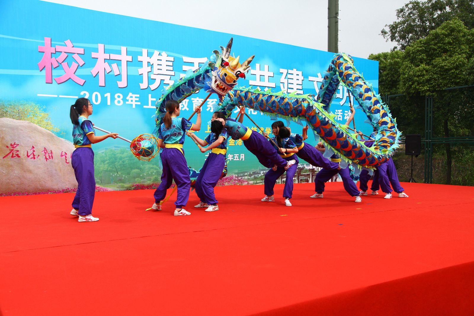文艺演出博得村民阵阵喝彩,将活动推向高潮。舞龙队的姑娘们英姿飒爽,技艺娴熟;大学生艺术团歌声嘹亮,表演到位;舞蹈《莲湘闹春》融合特有的淳朴民风,平稳流畅,活泼轻快;《十九大精神放光芒》快板表演展现出新时代大学生的精神风貌;现场插花表演让村民们大开眼界;现代舞《青春风采》充满节奏感,一首《我的祖国》跳出了学院舞蹈团的专业和水平;胡慧春老师潇洒的台风和悠扬的歌声,让《不忘初心》响彻王港村。金泽镇文广中心表演的颇具地方特色的锡剧和歌舞《墨梅》等节目穿插其中,受到村民们的喜爱。在环保知识有奖问答环节,现场气氛活跃,村民们踊跃抢答,其中一位小男孩答对了3个问题,捧着3盆绿植得意洋洋的样子,引得大家哈哈大笑。