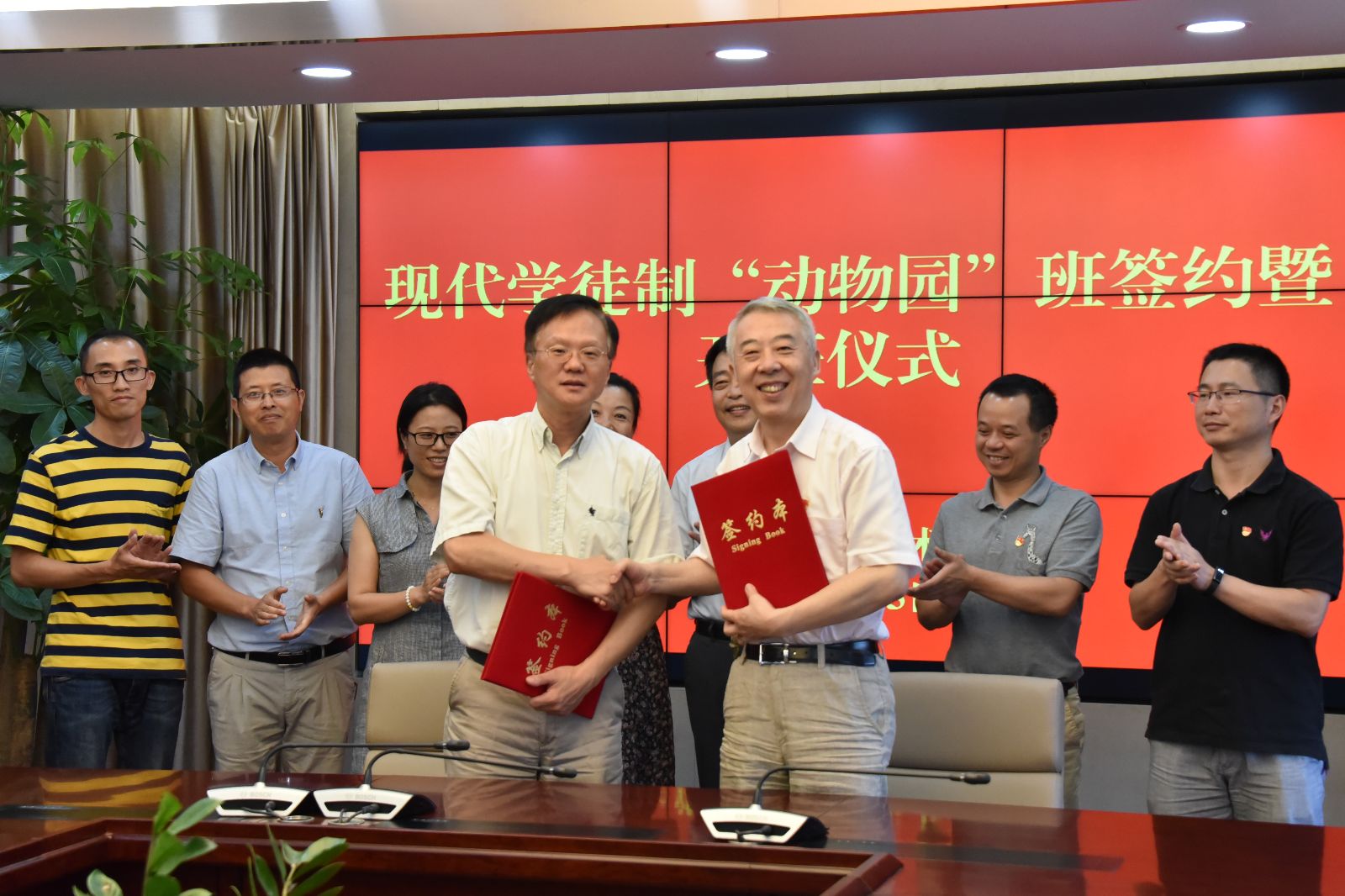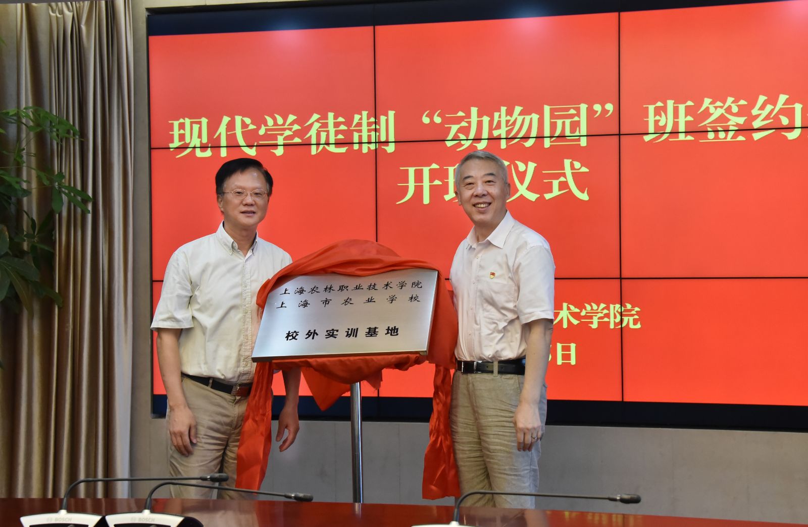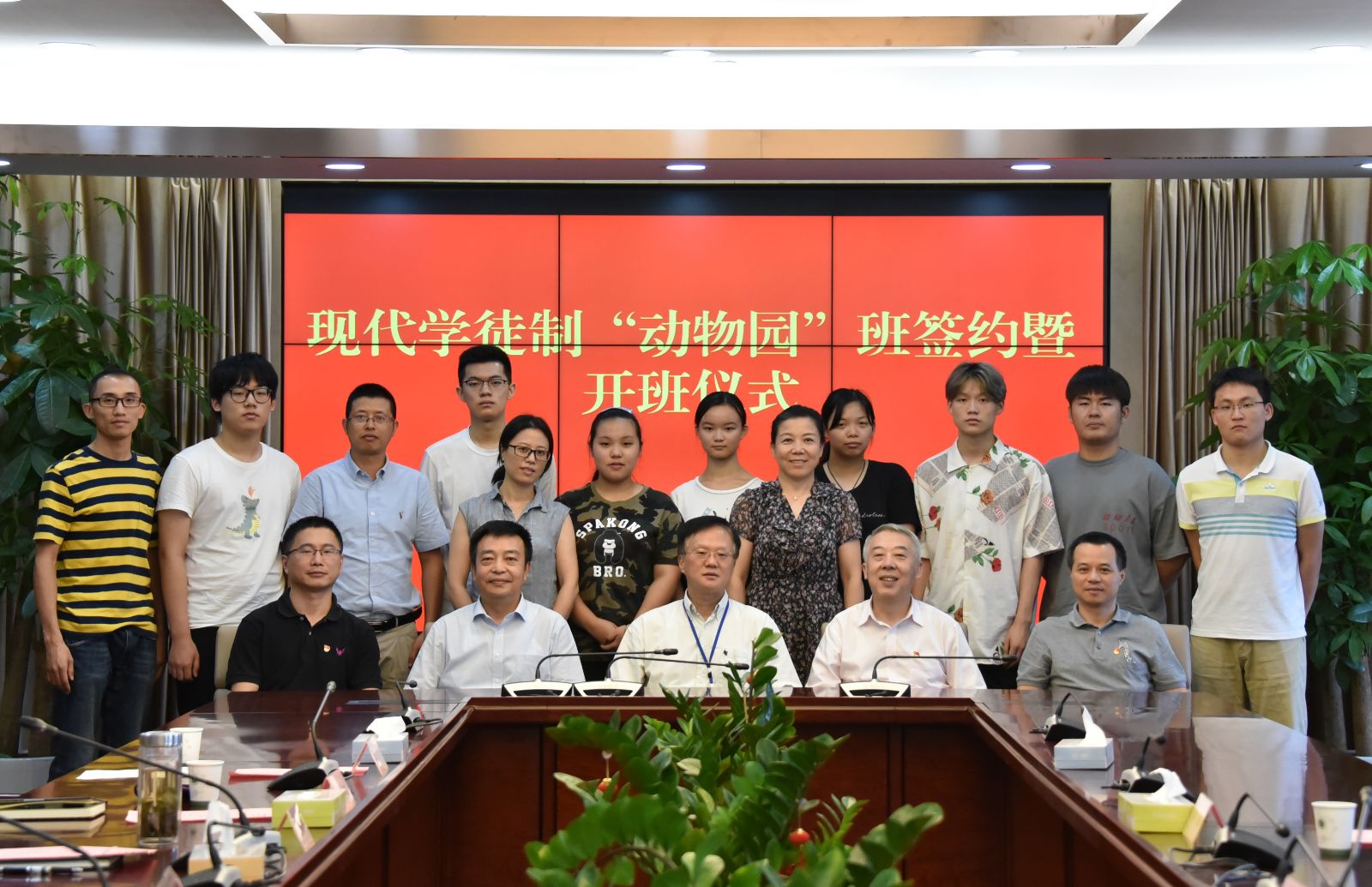 9月5日下午,在第一会议室,学院举行首期现代学徒制“动物园”班签约暨开班仪式,并为校外实训基地进行揭牌。上海动物园党委书记顾玉光,学院院长魏华,上海动物园代表,学院相关部门负责人、教师代表及“动物园”班全体学生参加。仪式由学院副院长谢锦平主持。