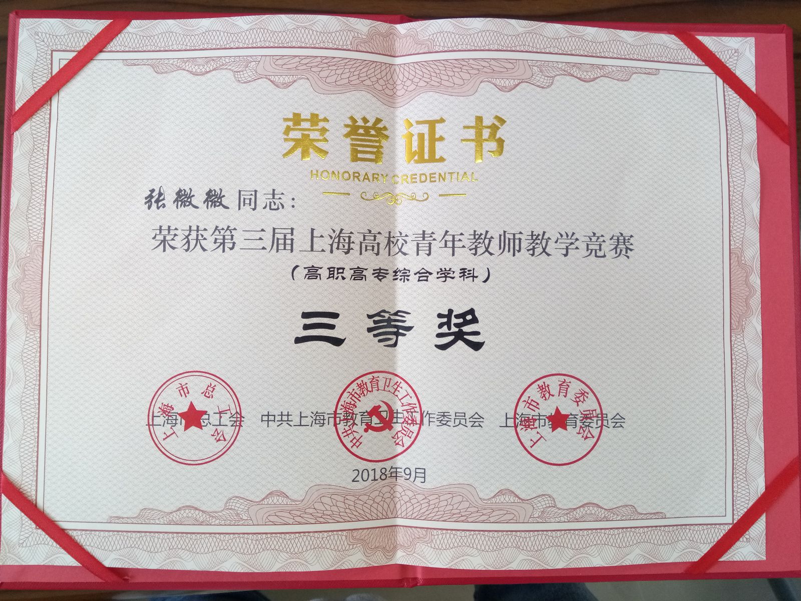 9月29日,“青春在讲台—第三届上海高校青年教师教学竞赛总结大会”在上海师范大学霞棐剧院举行。上海市总工会、市教卫工作党委、市教委、市教育发展基金会、市教育工会等领导出席总结大会。代表我院参加第三届上海高校青年教师教学竞赛的张微微老师获得了高职高专综合学科三等奖。