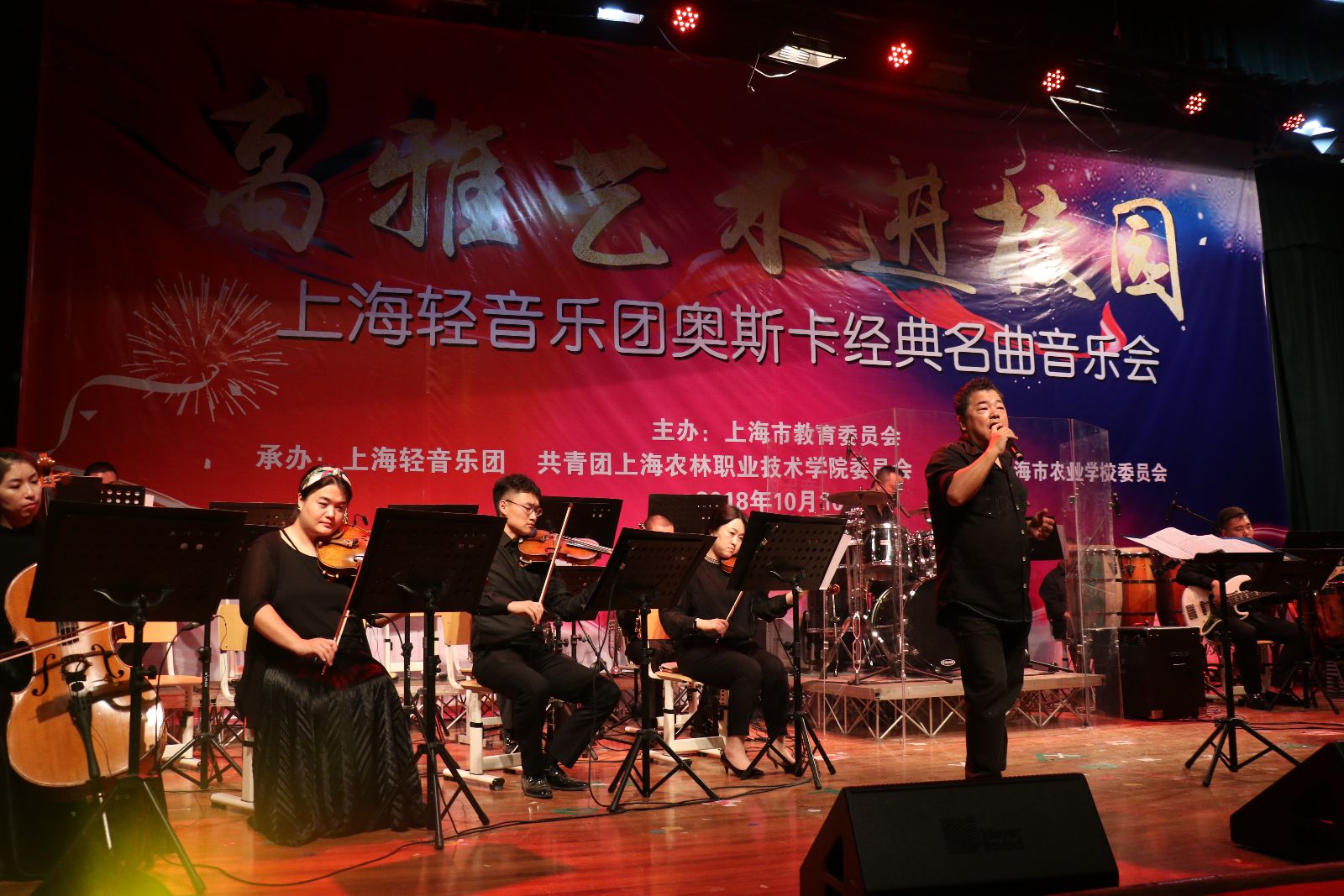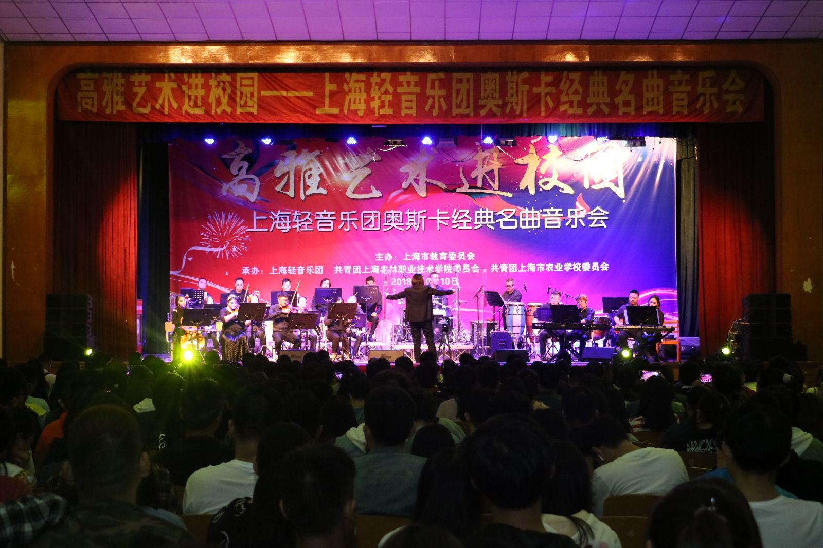10月10日,由市教委主办,上海轻音乐团、学院团委和市农校团委共同承办的“高雅艺术进校园”上海轻音乐团奥斯卡经典名曲音乐会在大礼堂精彩上演。1000余名师生共同聆听这场音乐盛宴。