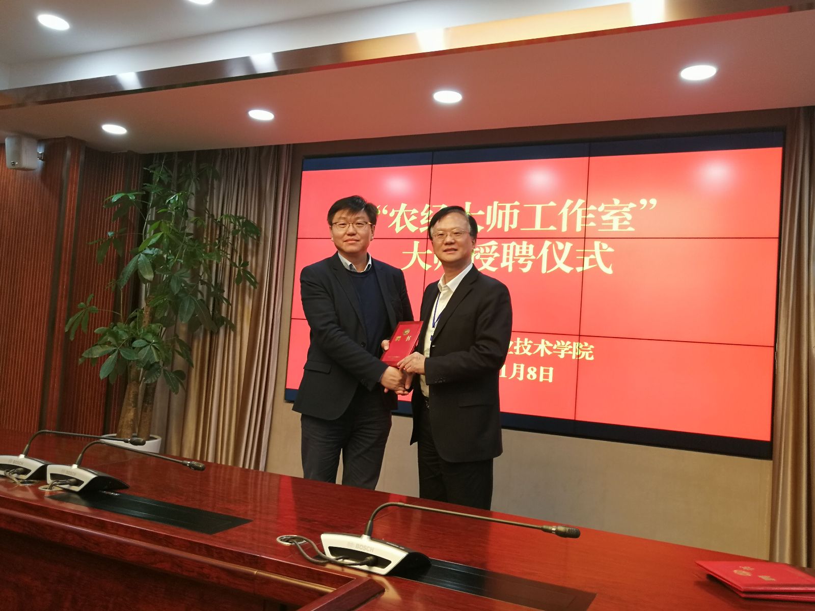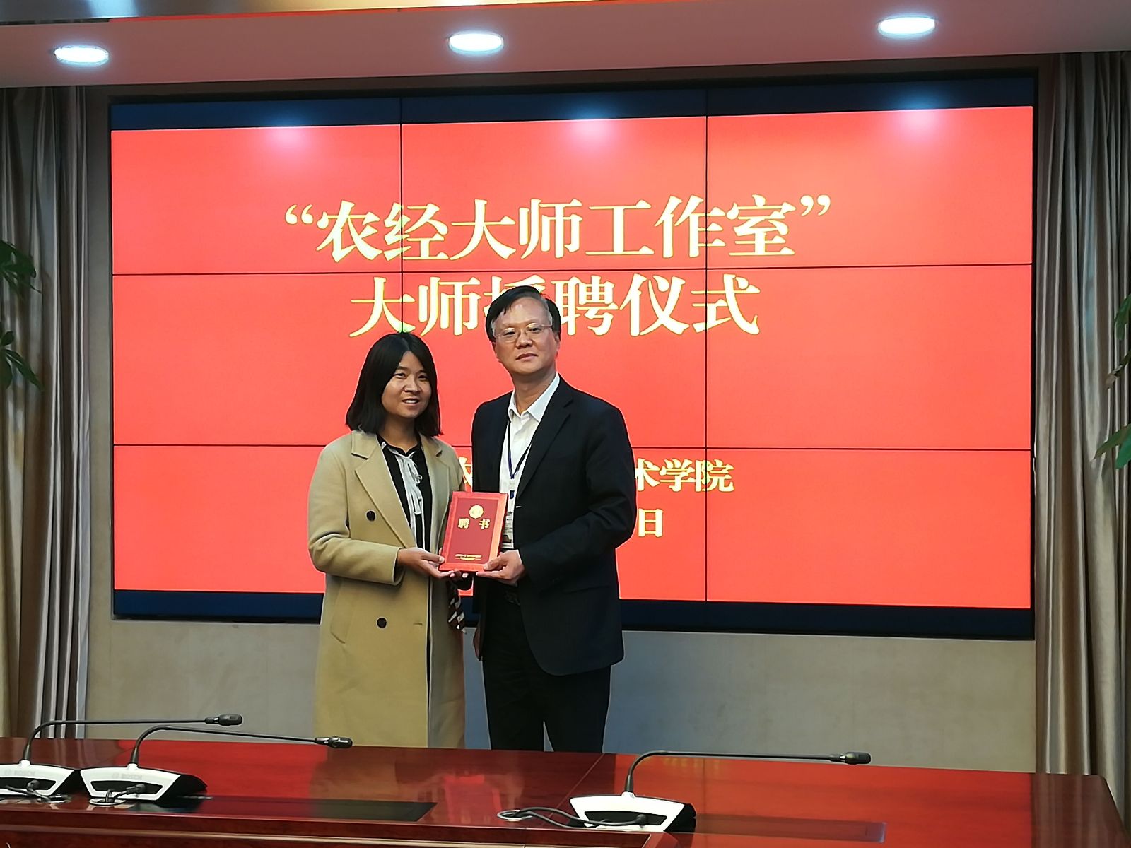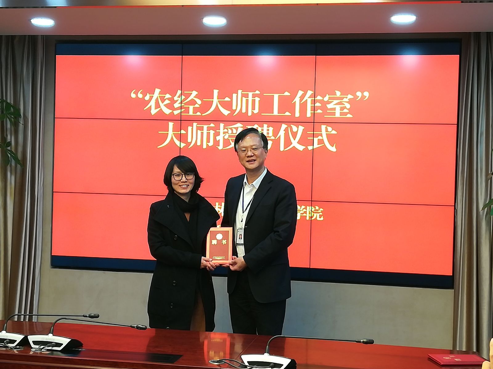 11月8日,经过近两年的筹备和试运行,上海农林职业技术学院农经大师工作室正式挂牌!院长魏华、副院长谢锦平出席,人事处、农经系相关领导及系部教师代表参加会议,魏华院长为王小林、张晓颖和冯贺霞三位农经大师颁发聘书。