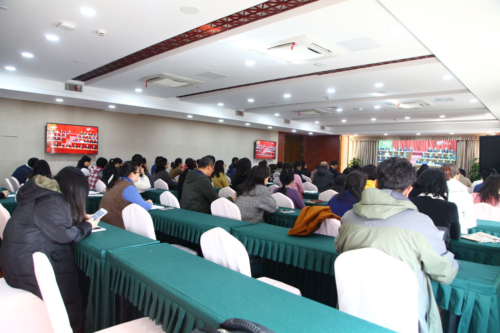 12月18日上午,在第一会议室、实训基地阅览室、一教213室,学院(市农校)校领导、中层干部、教职工和学生代表收听收看庆祝改革开放40周年大会,见证改革开放杰出贡献者,聆听习近平总书记重要讲话。